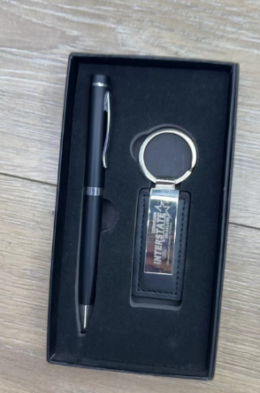 Pen and keychain set.
