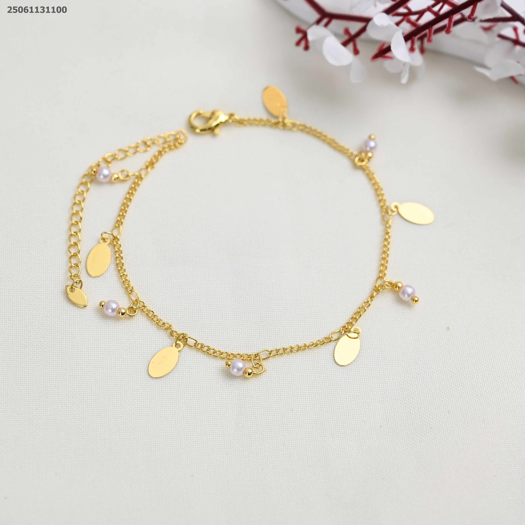 خلخال مع تعليقات حبات لولو