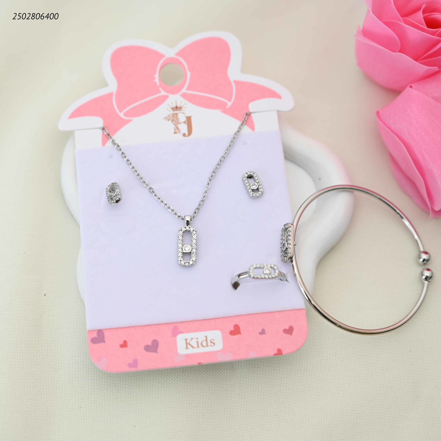 طقم للأطفال: سوار، سنسال، حلقان، وخاتم بتصميم بيضاوي مرصع.