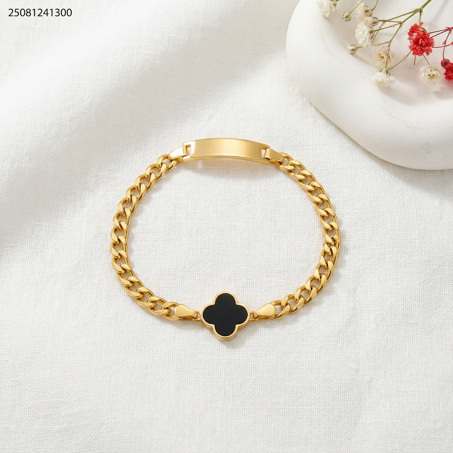 اسوارة مع مستطيل حفر مع وردة البرسيم لون اسود