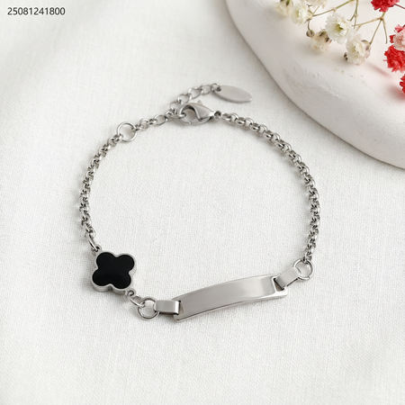 اسوارة مع مستطيل حفر مع وردة البرسيم لون اسود