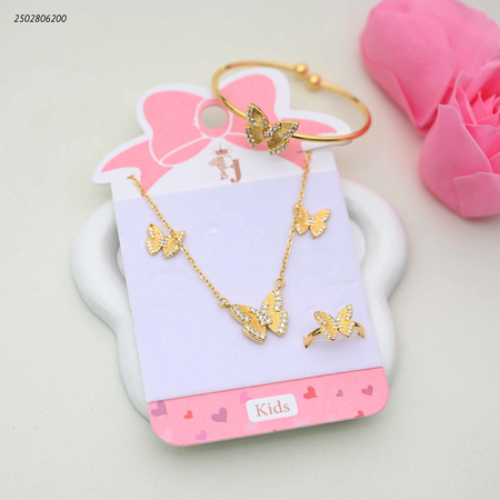 طقم للأطفال: سوار، قلادة، و حلق، وخاتم بفراشات .