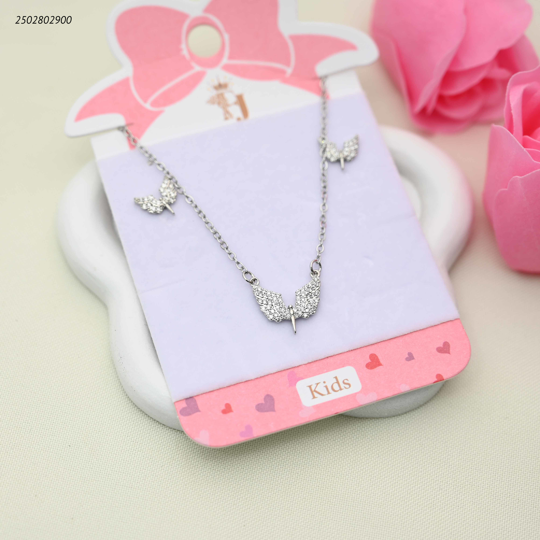 طقم للأطفال: سوار، سنسال، حلق، وخاتم بتصميم أجنحة مرصعة.