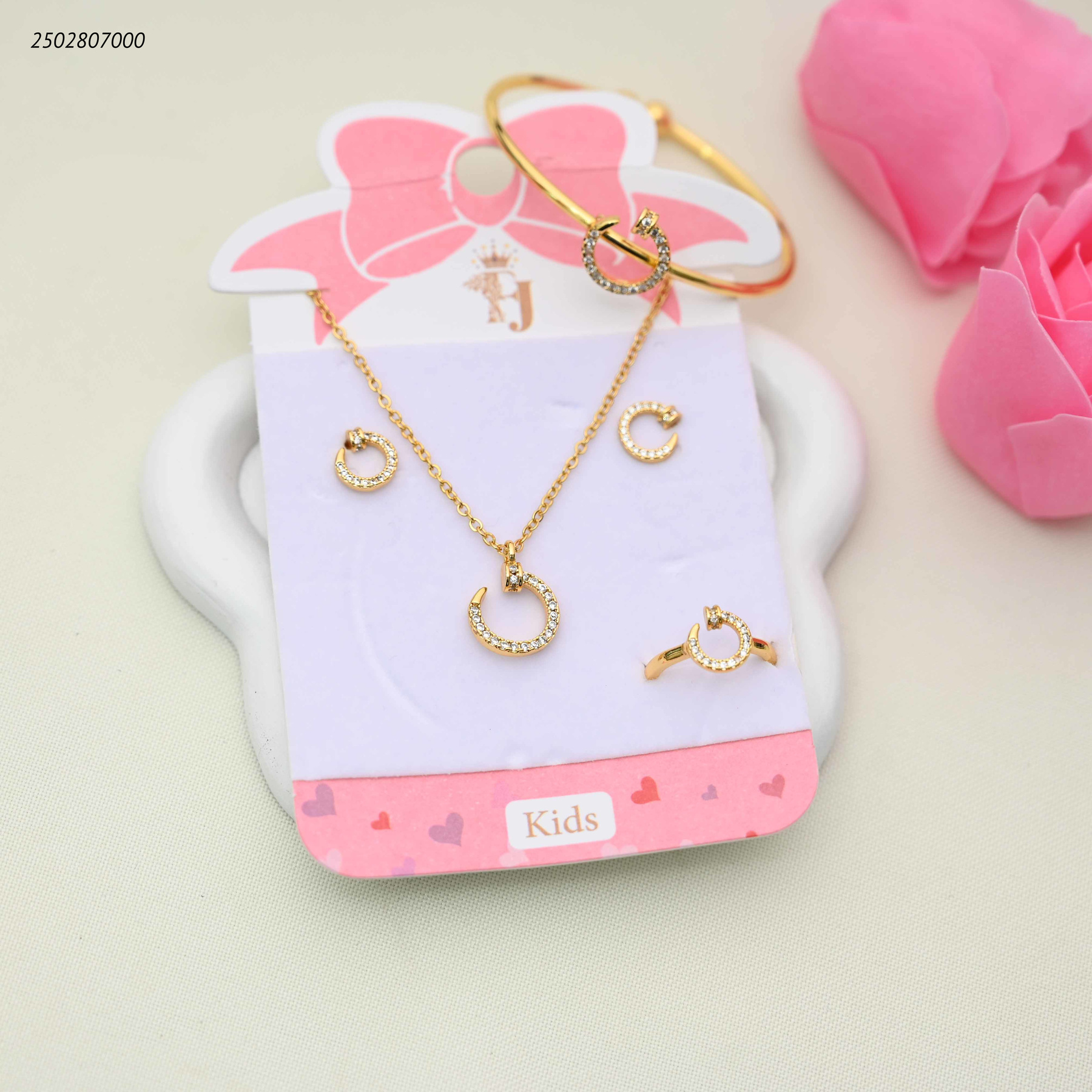 طقم للأطفال: سوار، سنسال، حلق، وخاتم بتصميم دائري مرصع.