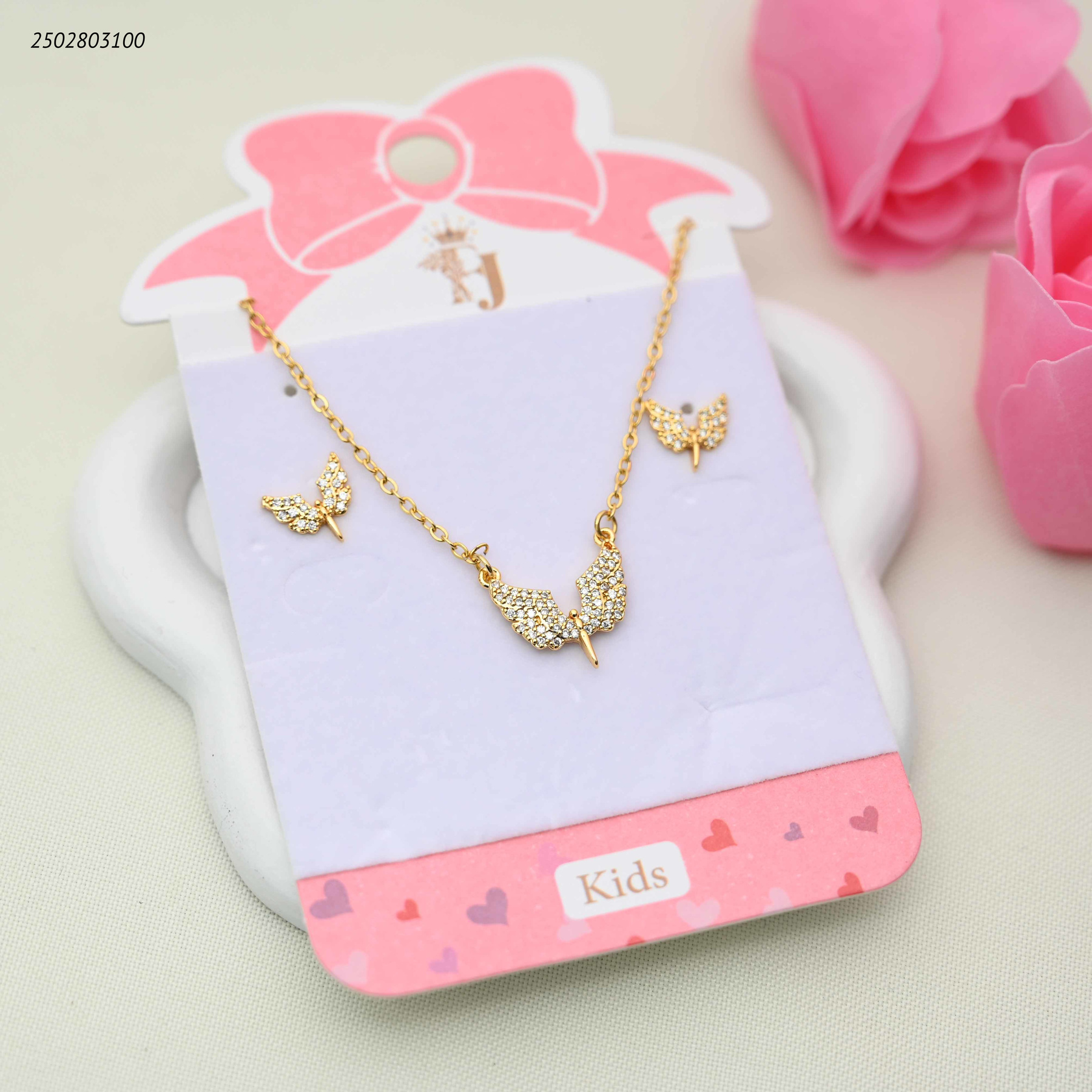 طقم للأطفال: سوار، سنسال، حلق، وخاتم بتصميم أجنحة مرصعة.