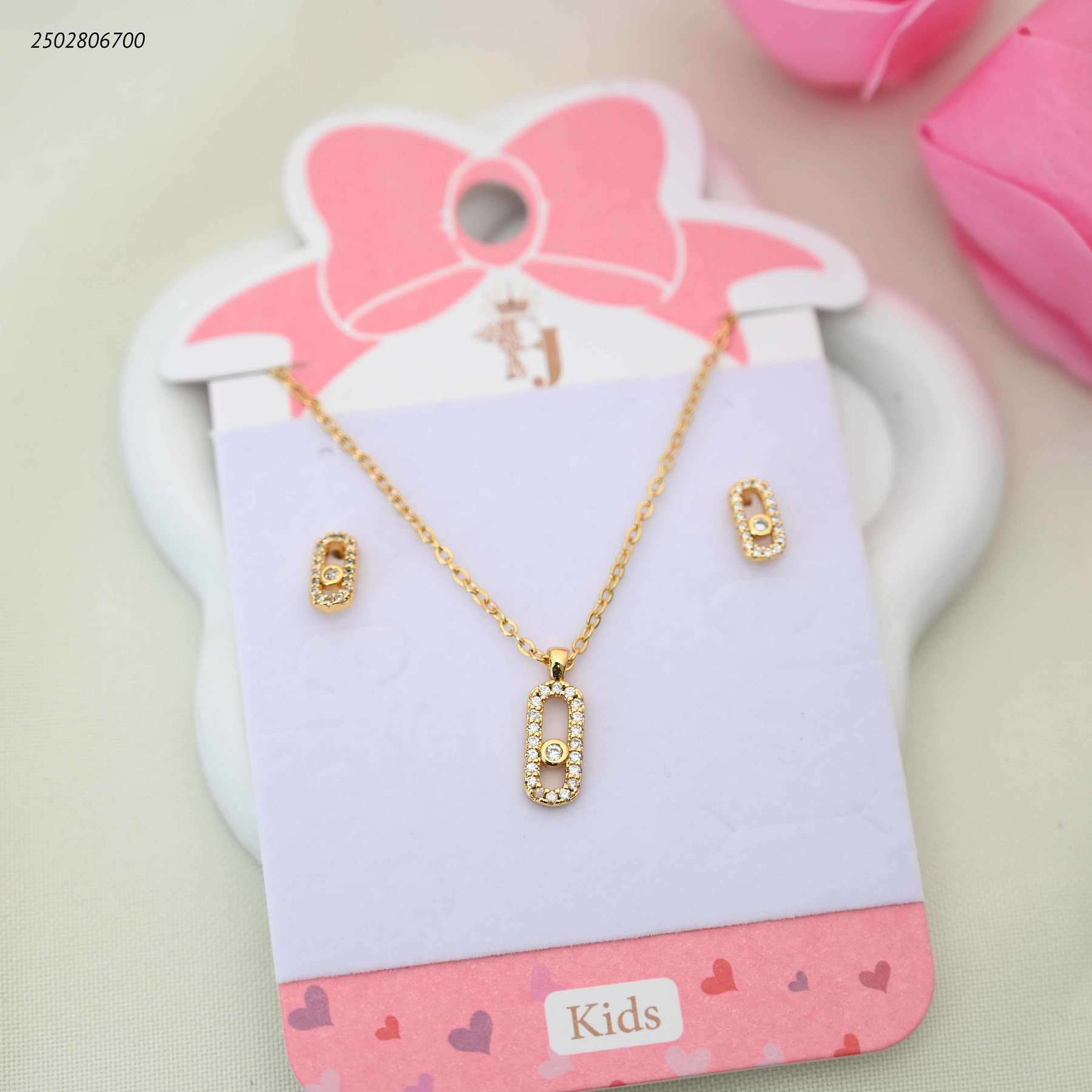 طقم للأطفال: سنسال، و حلق بتصميم بيضاوي مرصع.