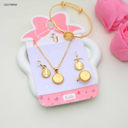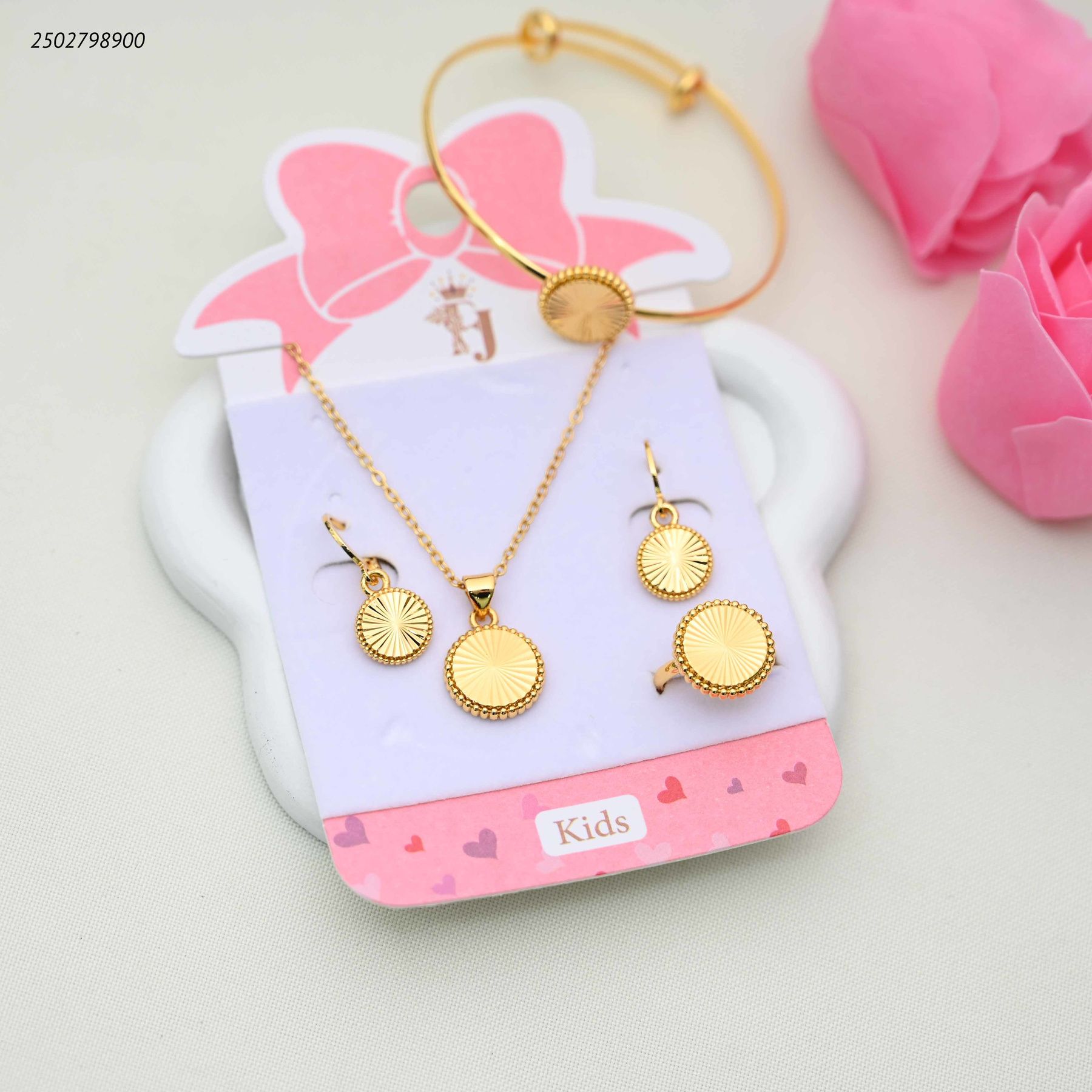 طقم مجوهرات للأطفال مطلي بالذهب: سوار، قلادة، حلقان، وخاتم بتصميم دائرة cnc.