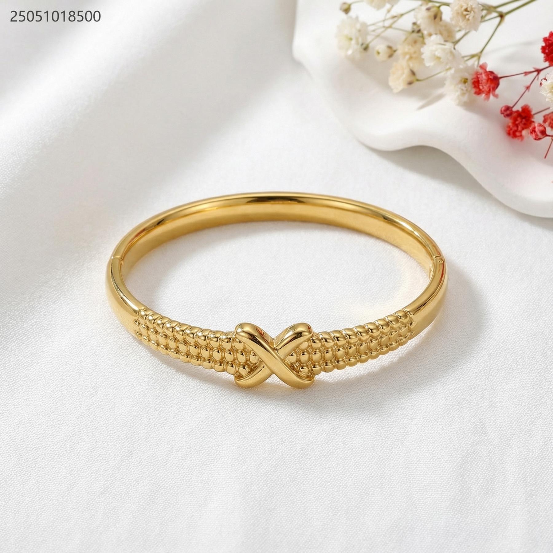 اسوارة أنيقة مع زركون و رسمة اكس بارزة