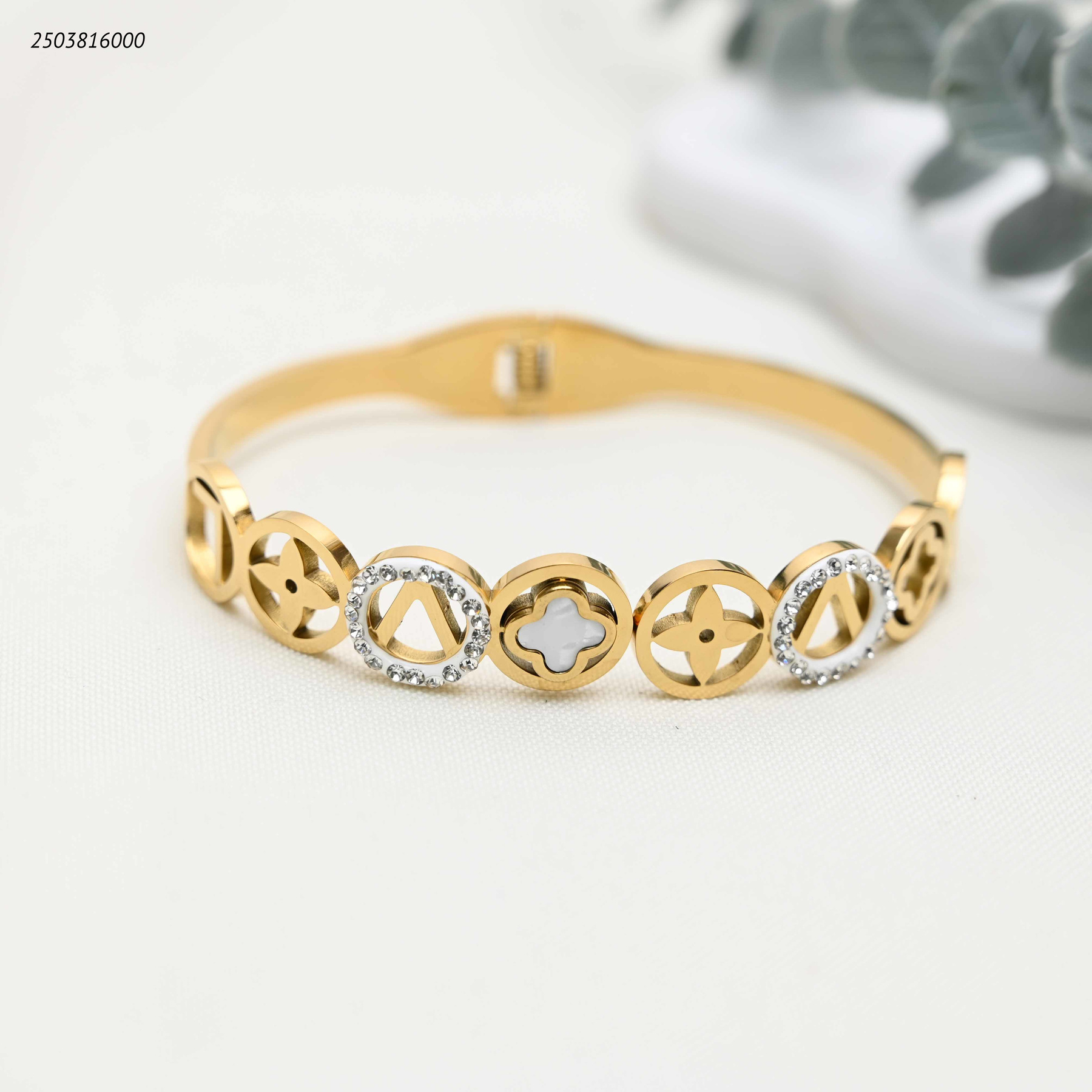 سوار ذهبي عريض مزين بخمسة أشكال متصلة