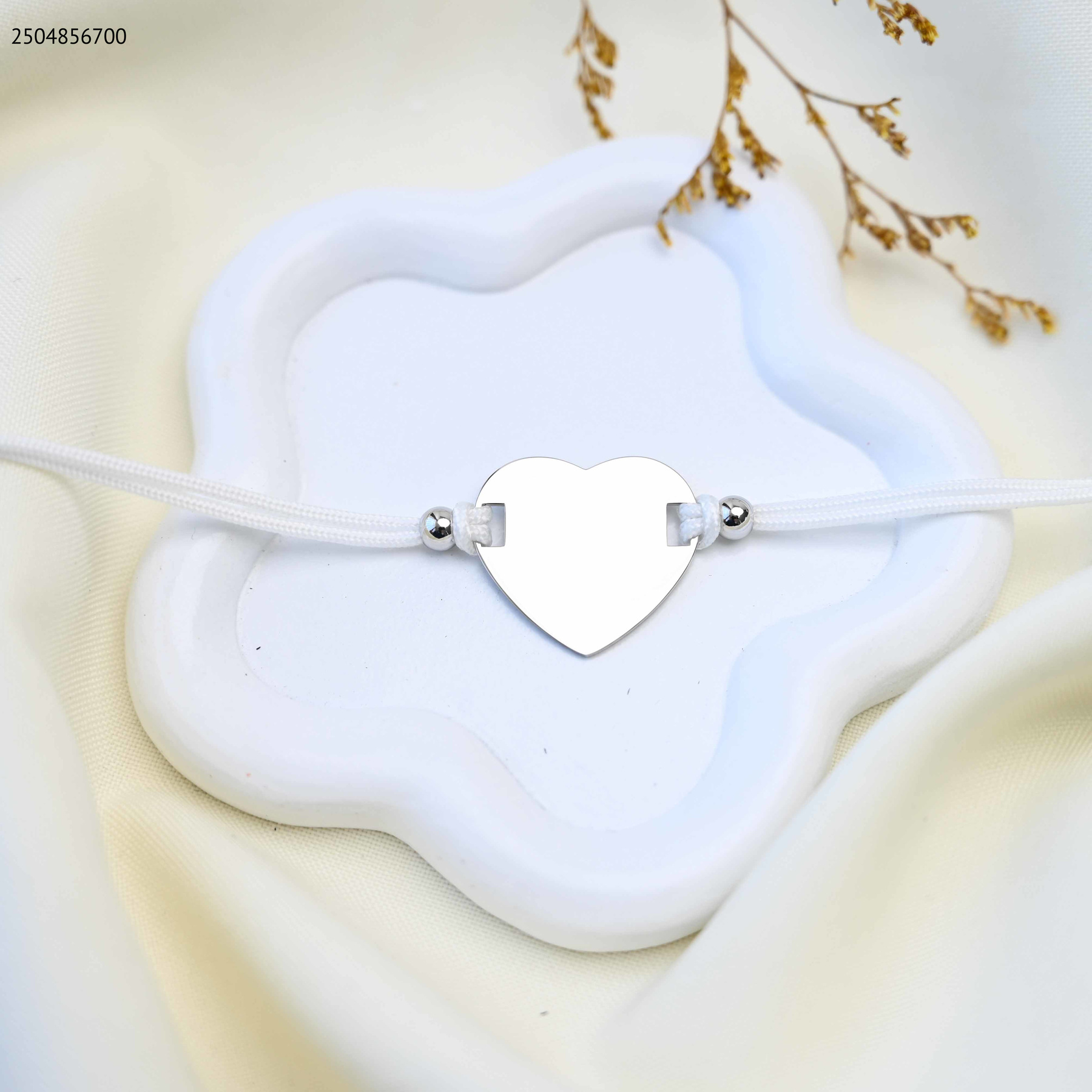 اسوارة بقلادة قلب للحفر ، متصلة بحبل مجدول.