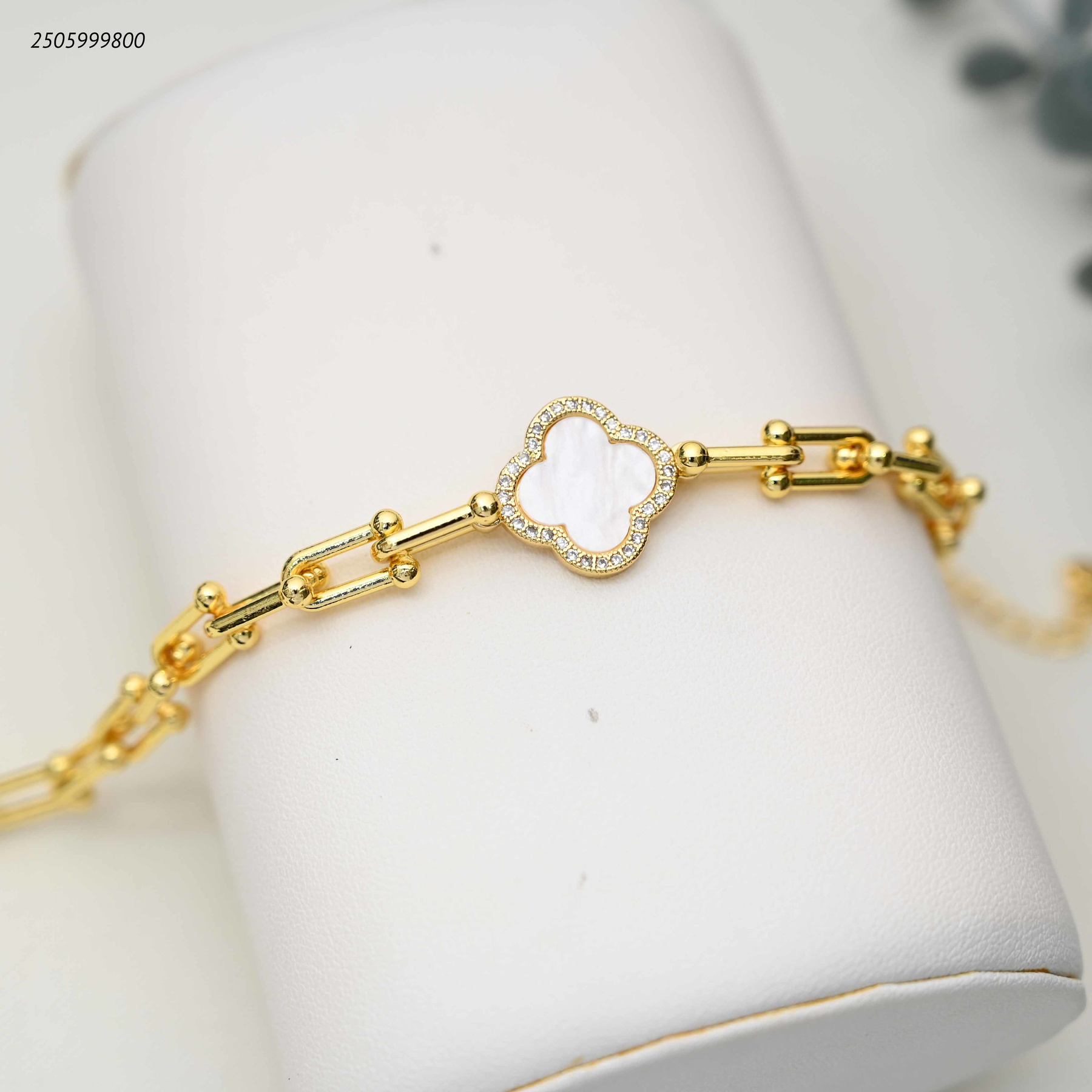 إسورة بسلسلة وتصميم زهرة البرسيم مرصعة بالزركون.