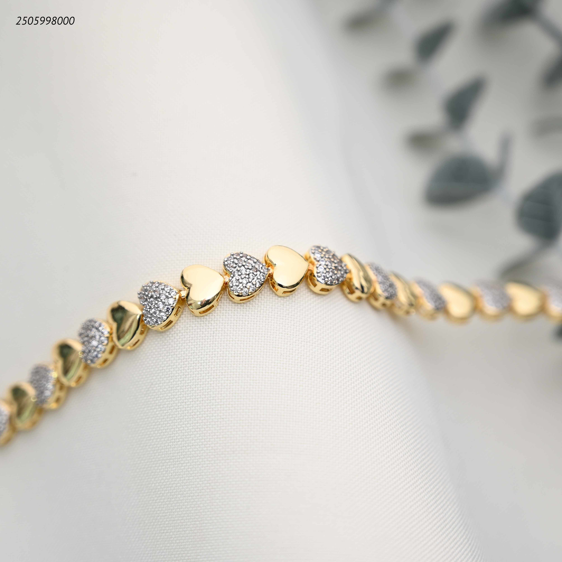 سوار قلوب ذهبية وفضية مرصعة بالكريستال اللامع