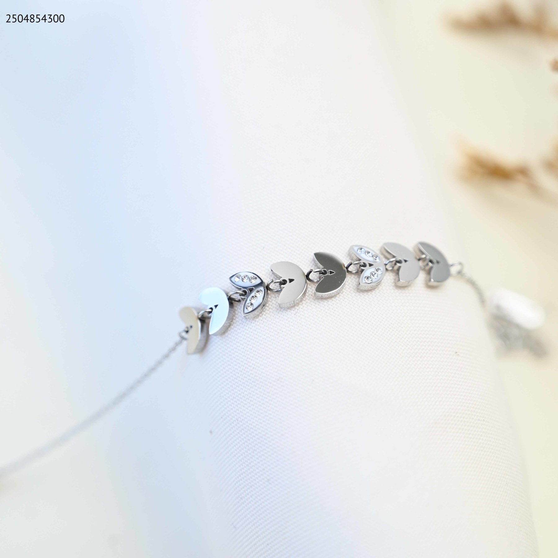 اسوارة على شكل أوراق متصلة،بعضها مرصع بزركون لامع.