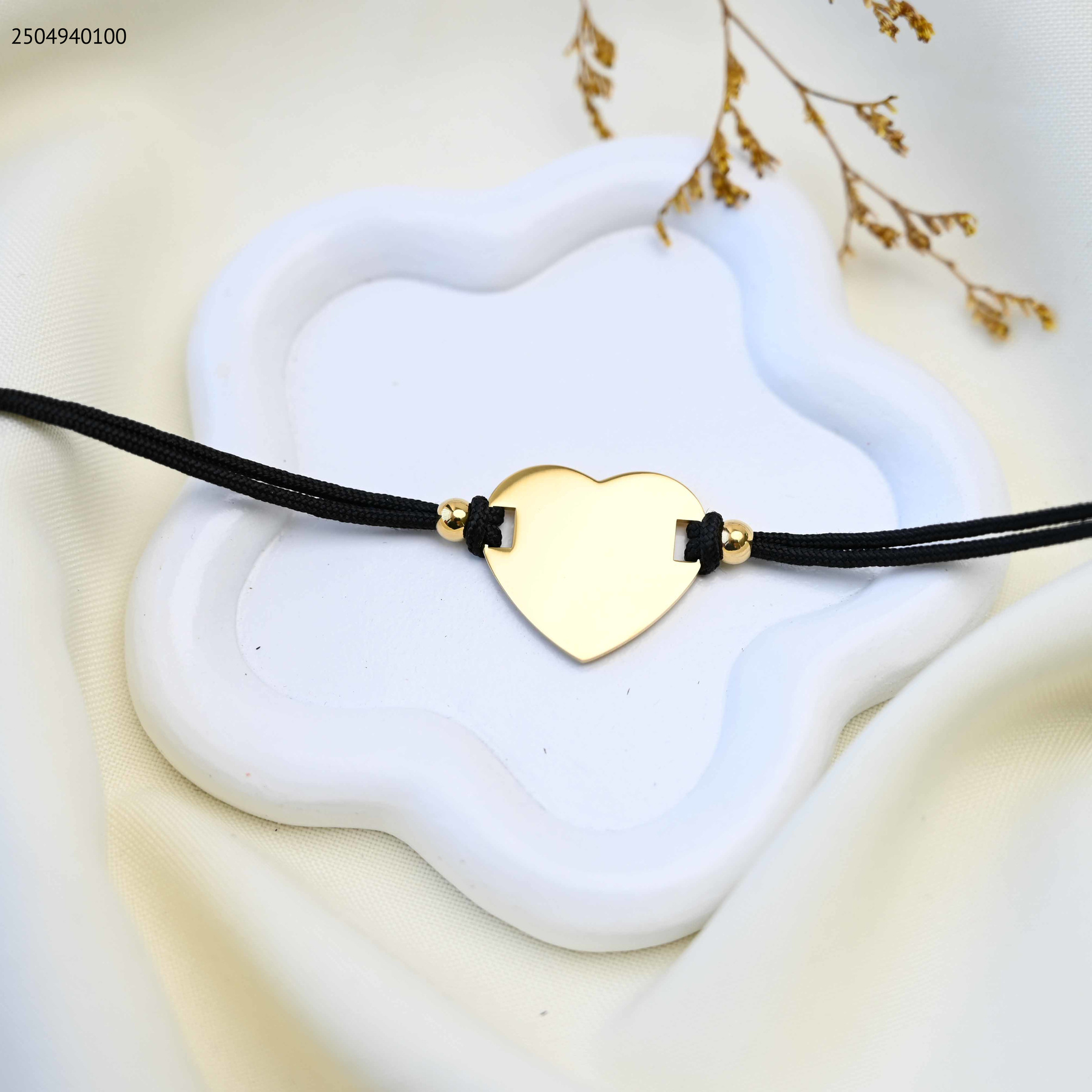 اسوارة بقلادة قلب للحفر ، متصلة بحبل مجدول.