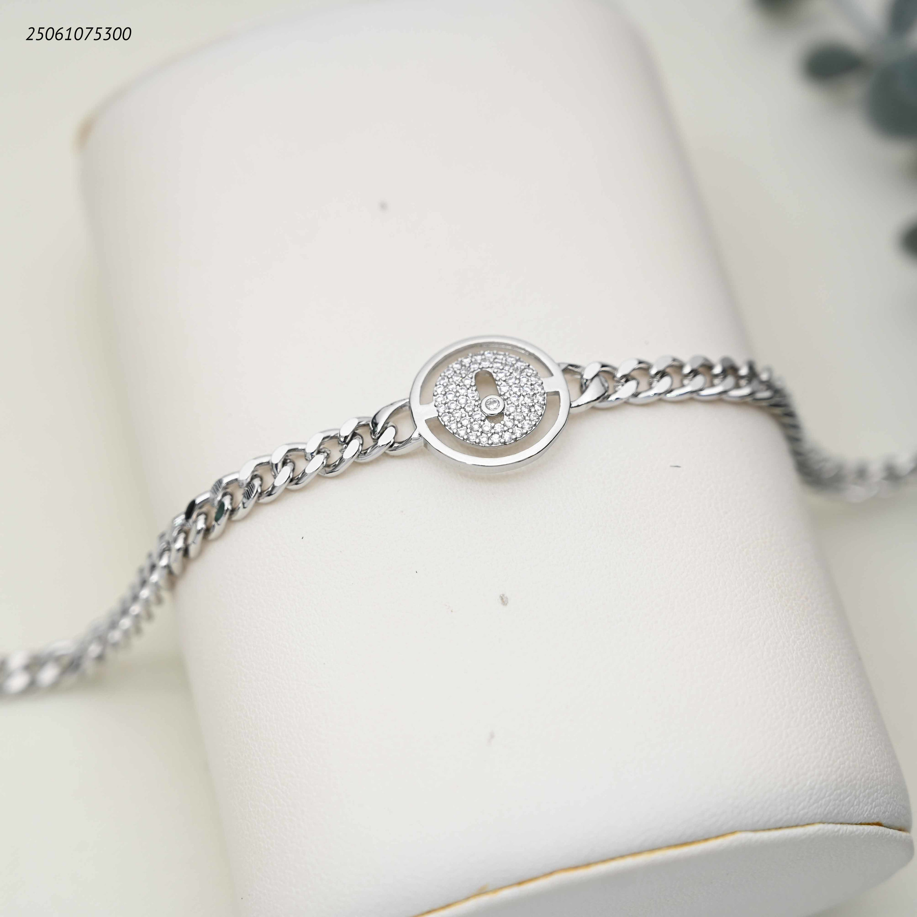 اسوارة جنزير مع دائرة عليها زركون