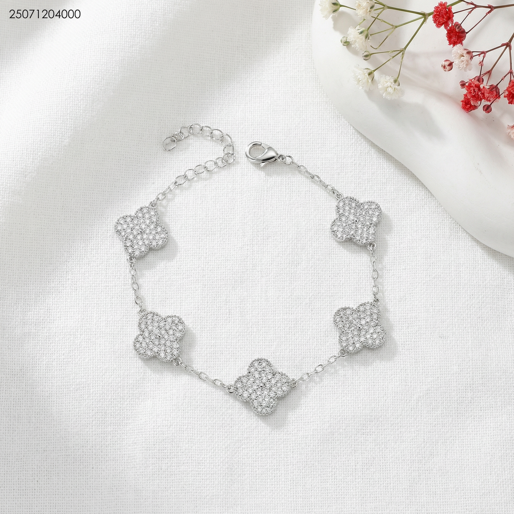 اسوارة ماركة سلسلة من الوردة الرباعية مع زركون