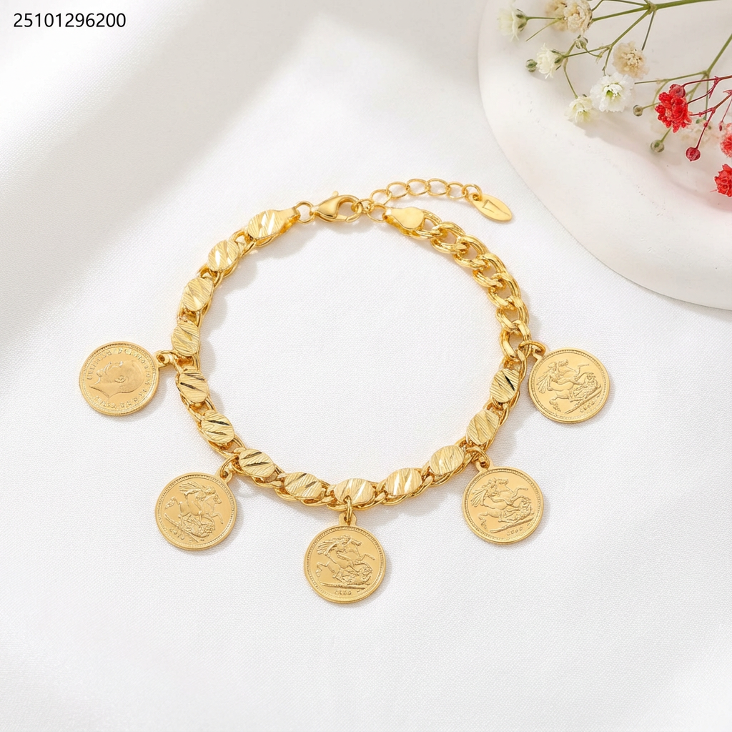 اسوارة ذهبي حلبي مع تعليقات بشكل ليرة