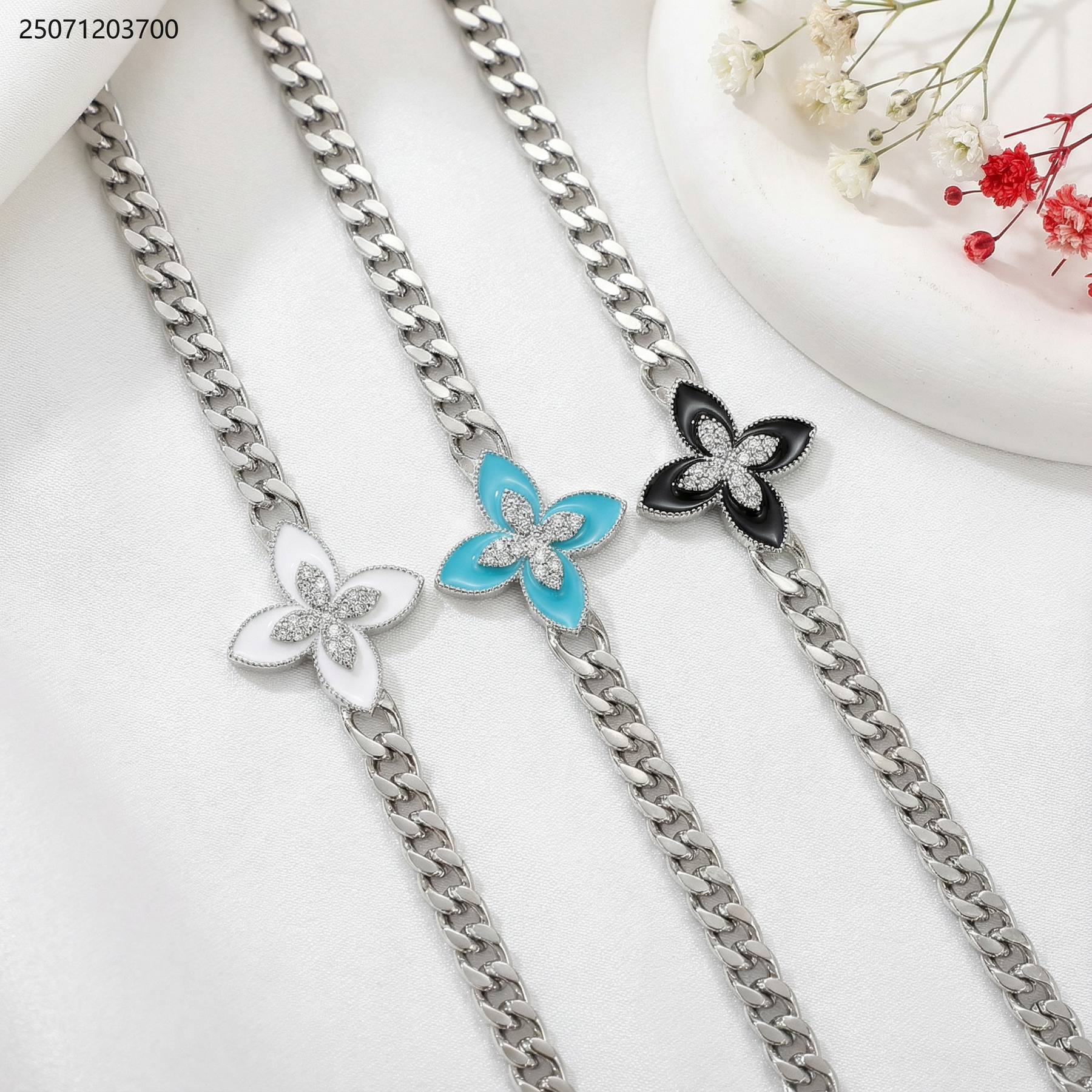 اسوارة جنزير شكل وردة رباعية ملونة