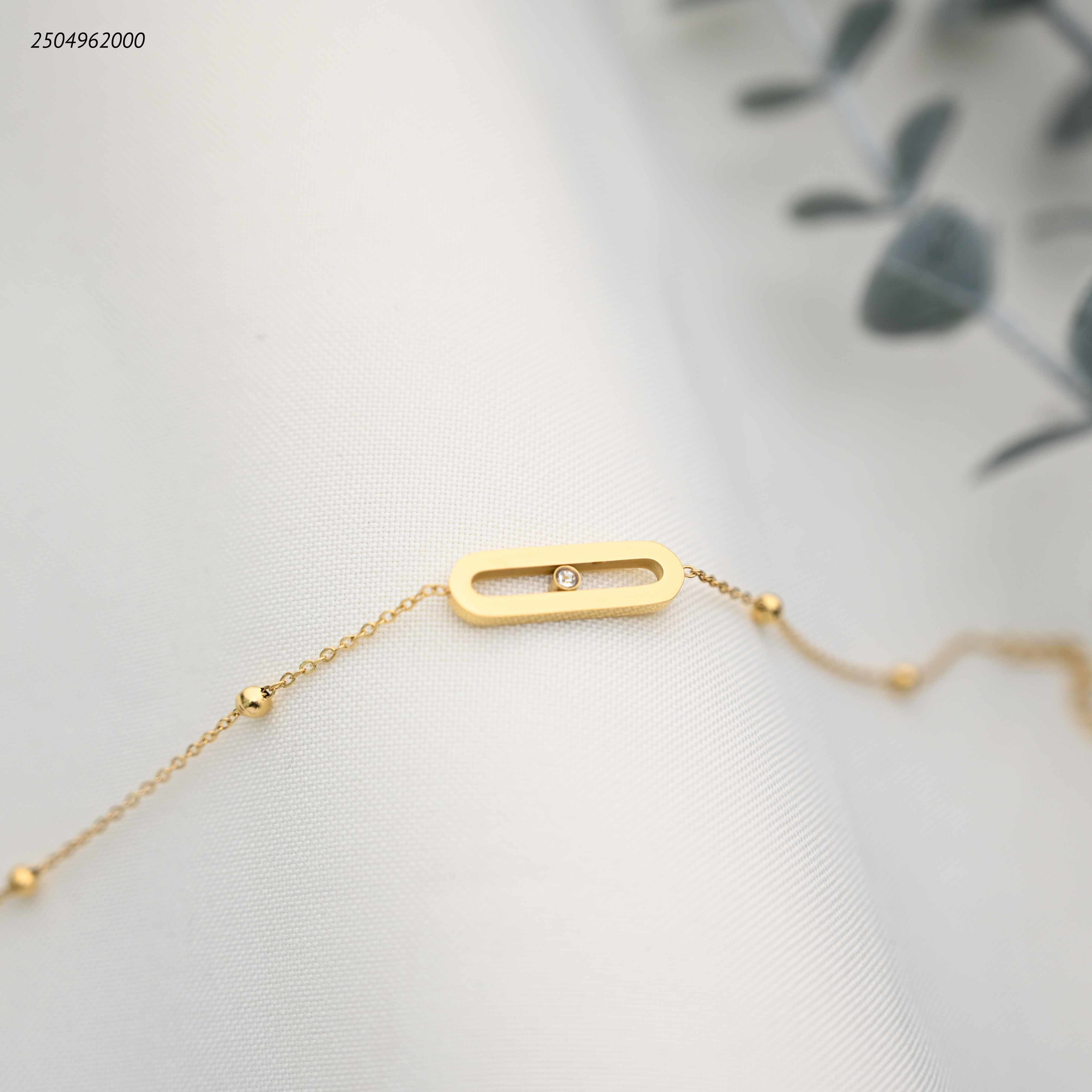 اسوارة أنيقة مزينة بتعليقتين بيضاويتين مفتوحتين متماثلتين، بتصميم عصري وراقي.