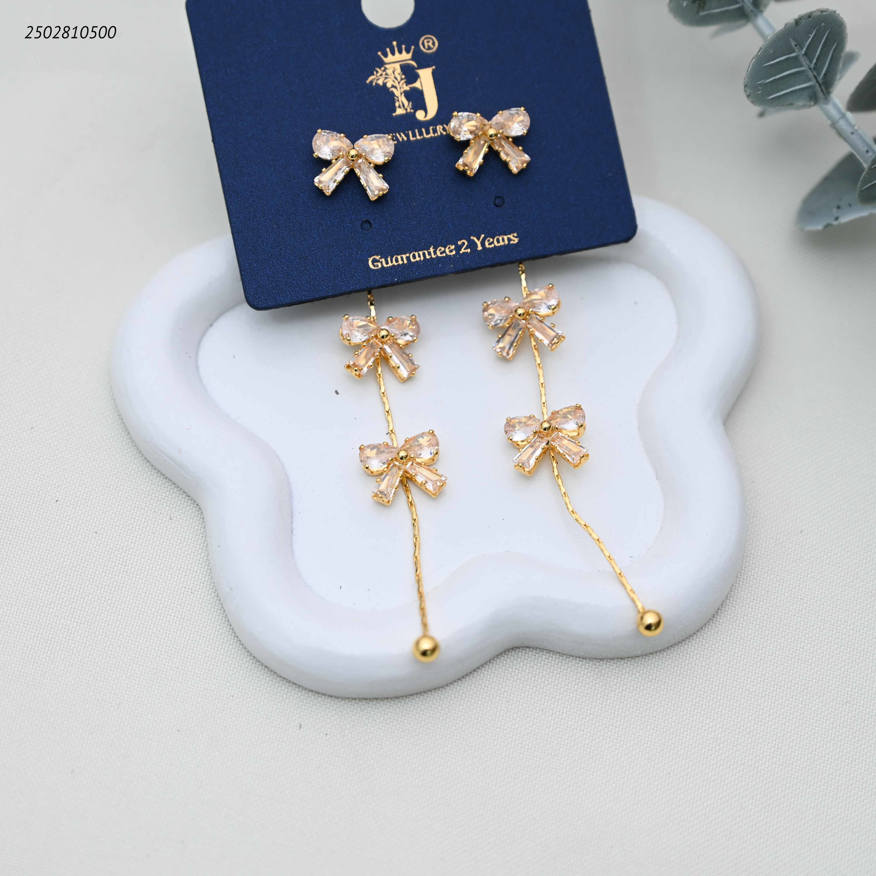 حلق متدلي مزين بثلاثة فيونكات مرصعة.