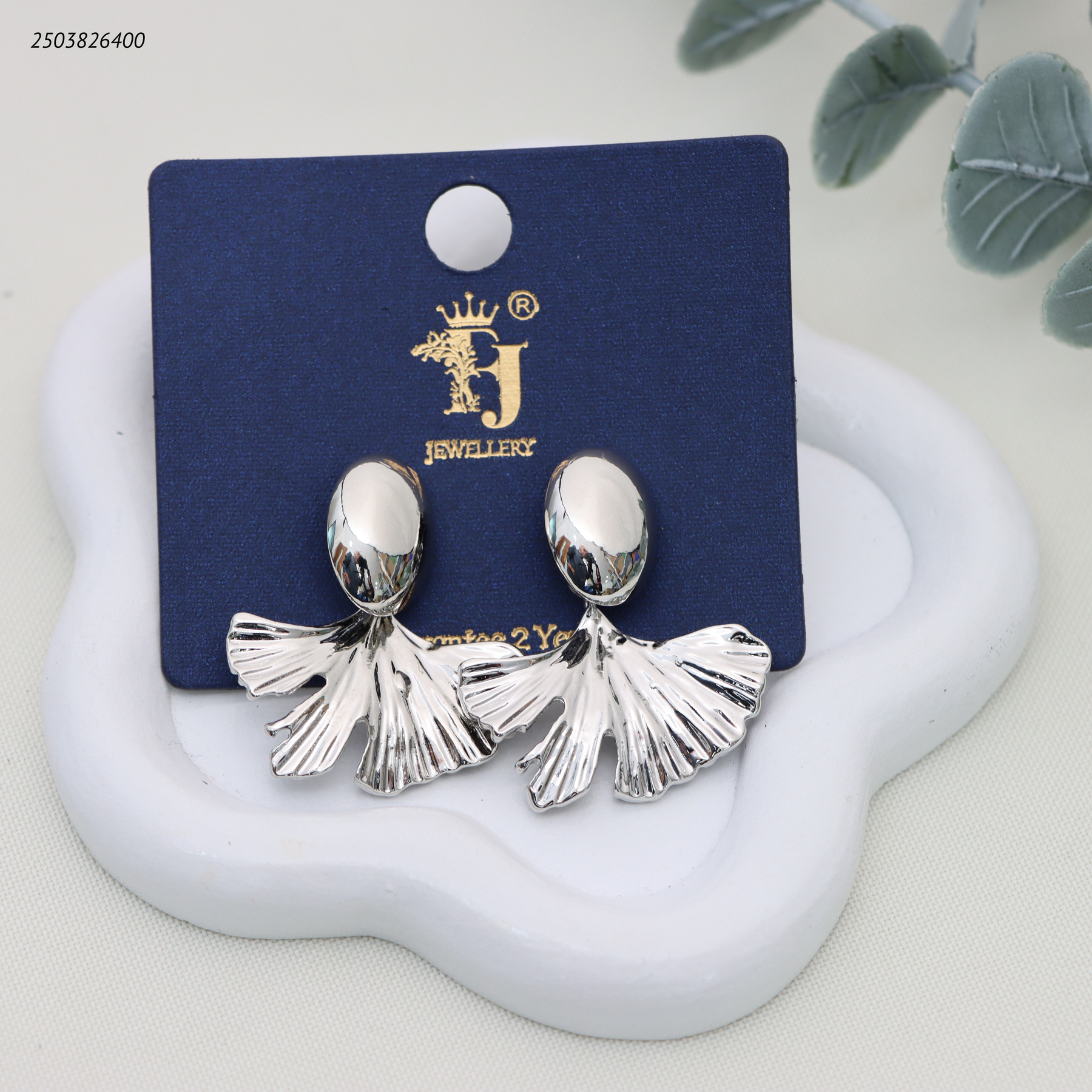 أقراط نسائية فضية بتصميم أوراق الجنكة بيلوبا