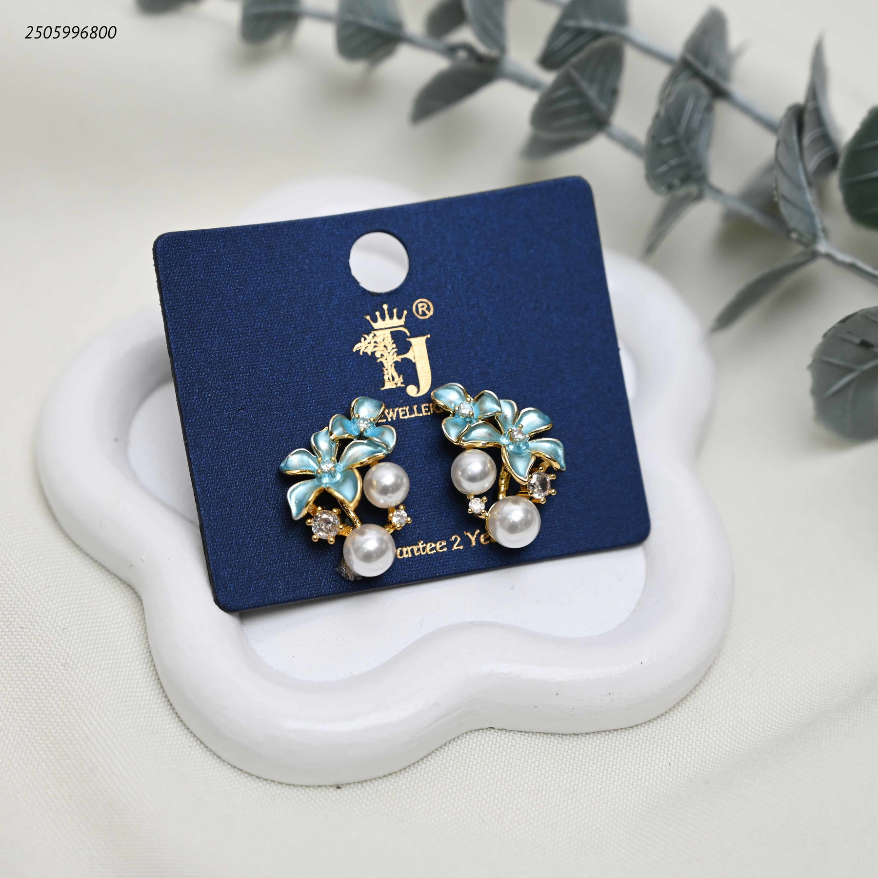 أقراط أذن بتصميم زهور وأوراق مرصعة باللؤلؤ
