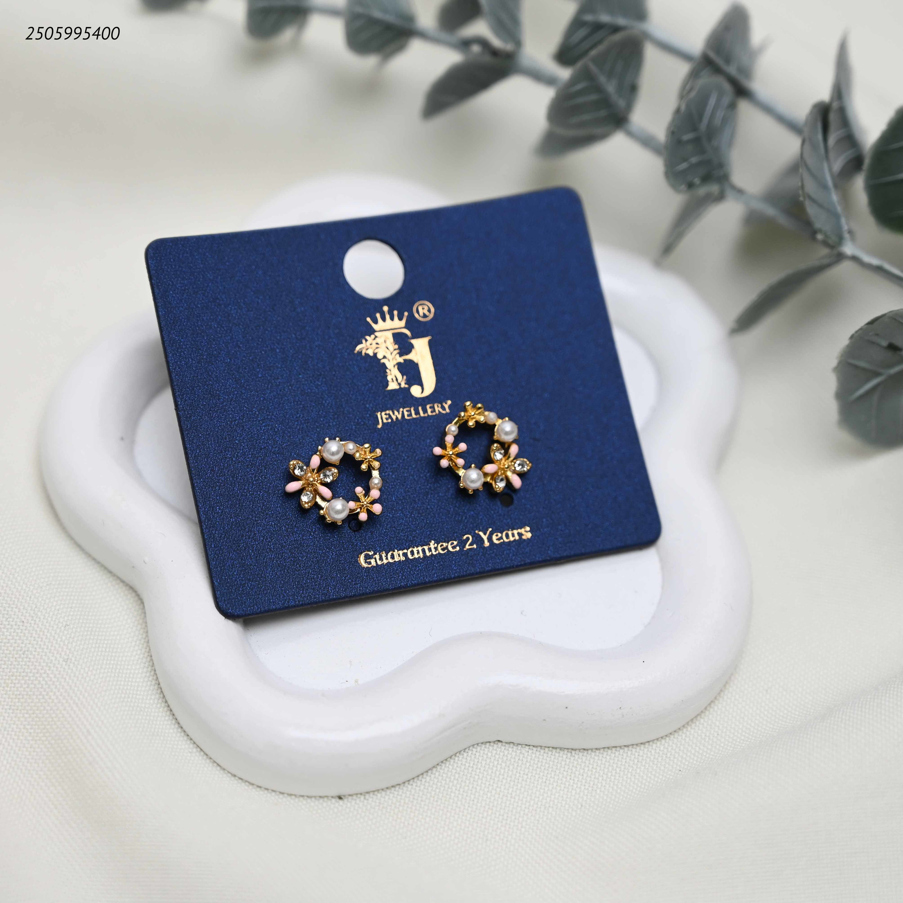 أقراط أذن بتصميم زهور مرصعة باللؤلؤ والزركون