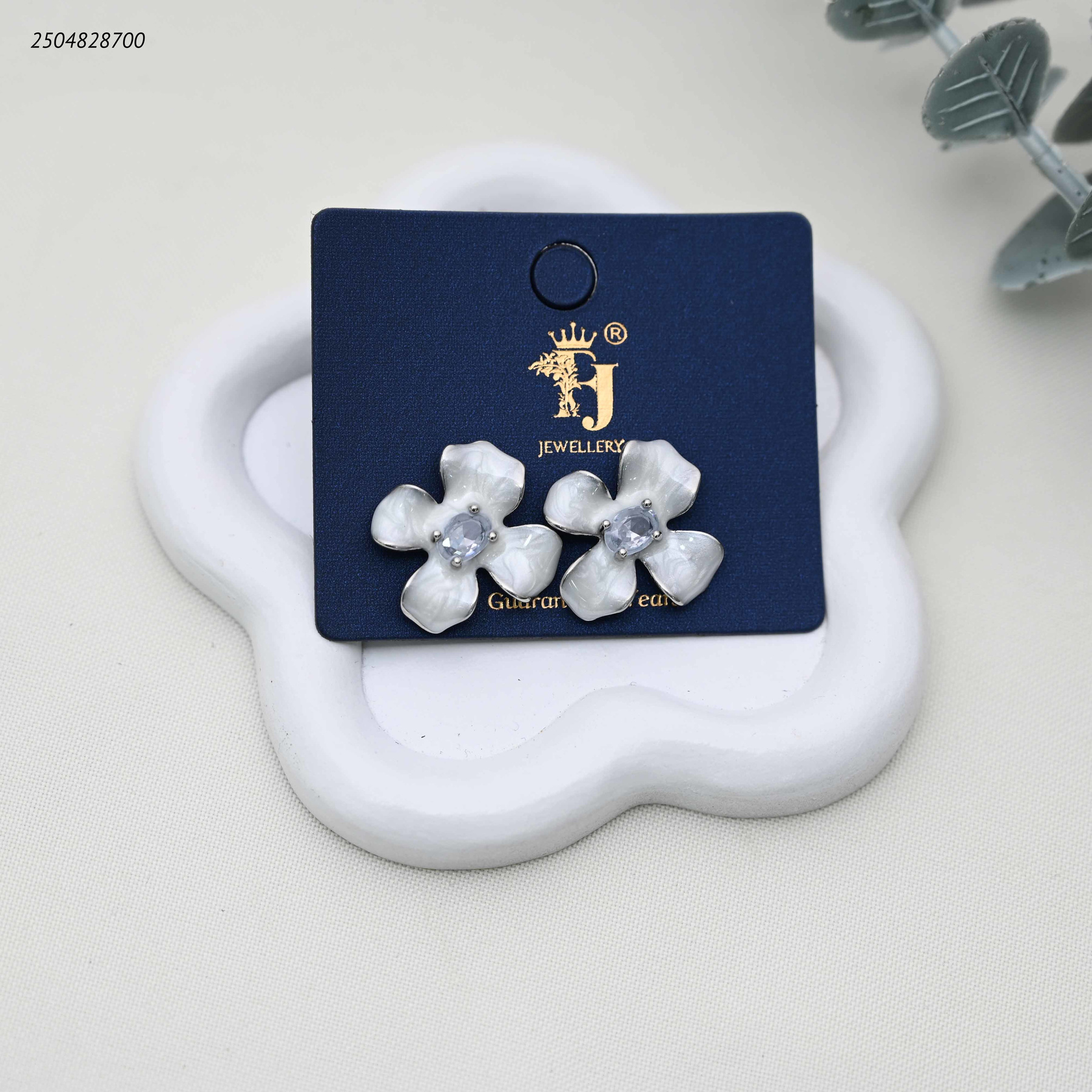 أقراط نسائية بتصميم زهرة مطلية بالمينا الوردية ومرصعة بالكريستال
