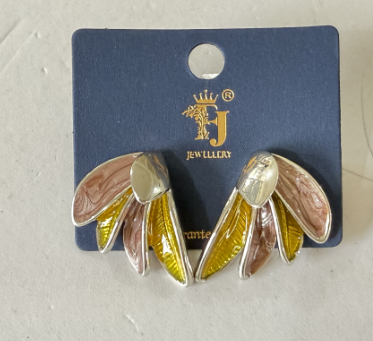 أقراط نسائية بتصميم أوراق الشجر مطلية بالمينا الملون