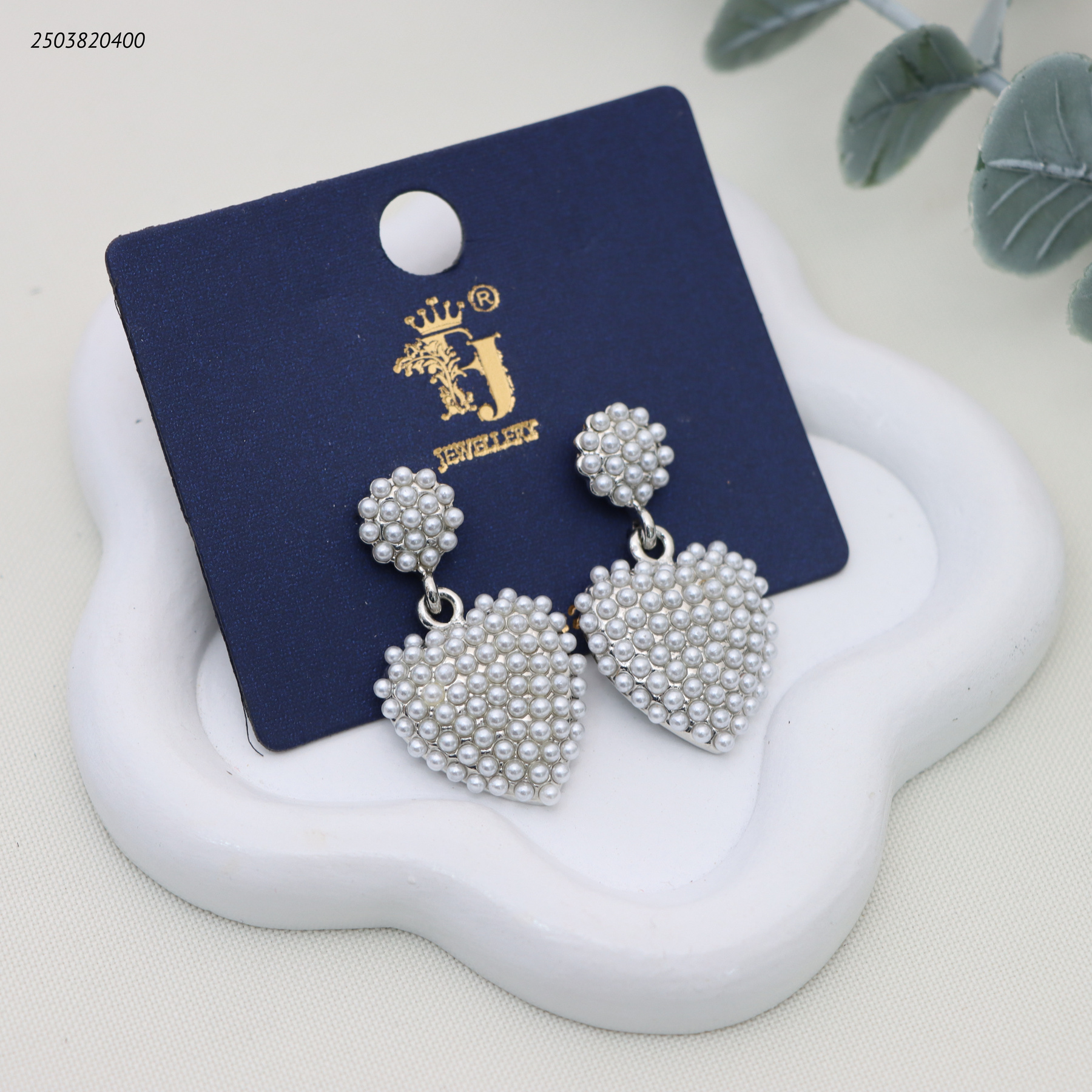 أقراط نسائية فضية متدلية بتصميم قلب مزين باللؤلؤ