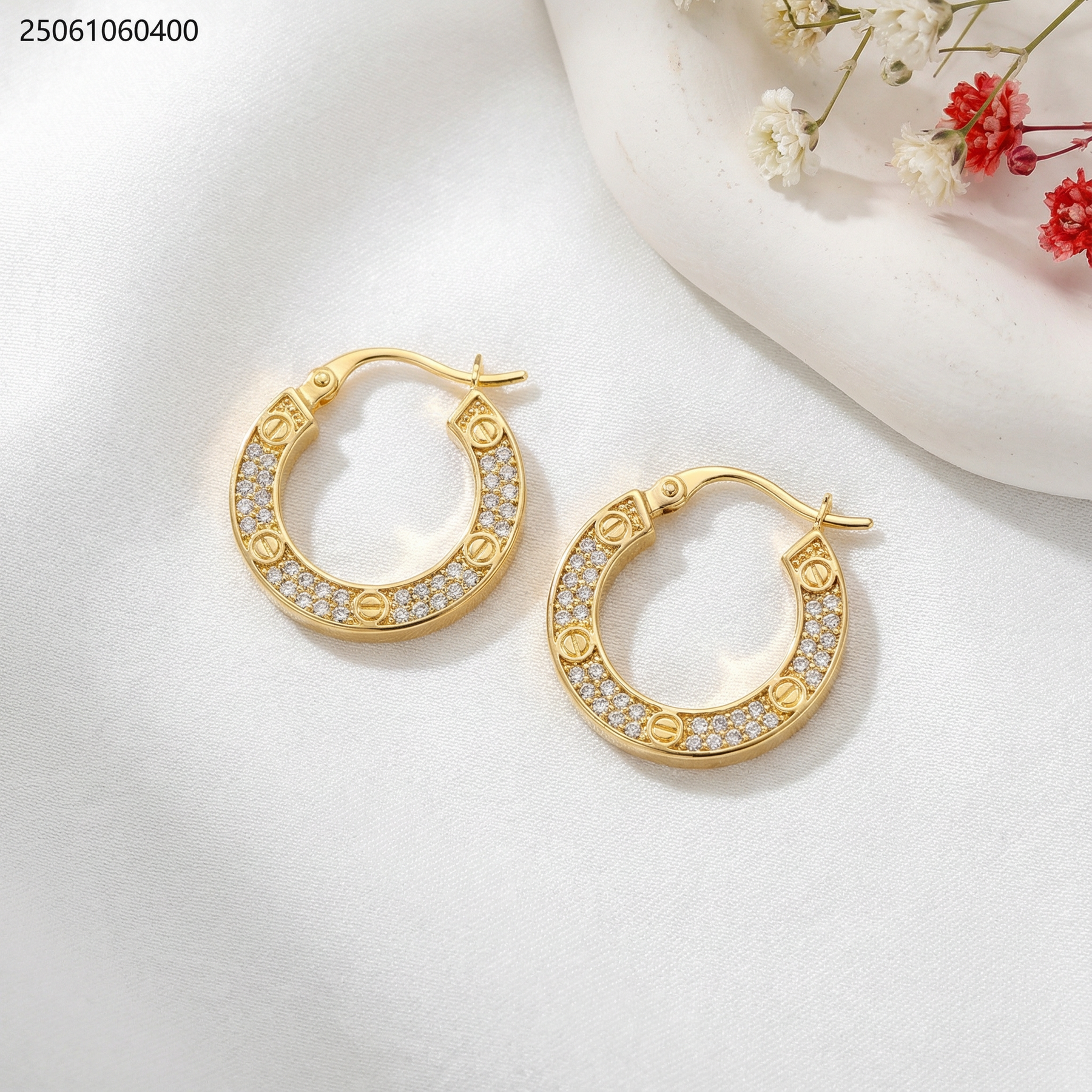 حلق دائري مفرغ مع زركون ماركة