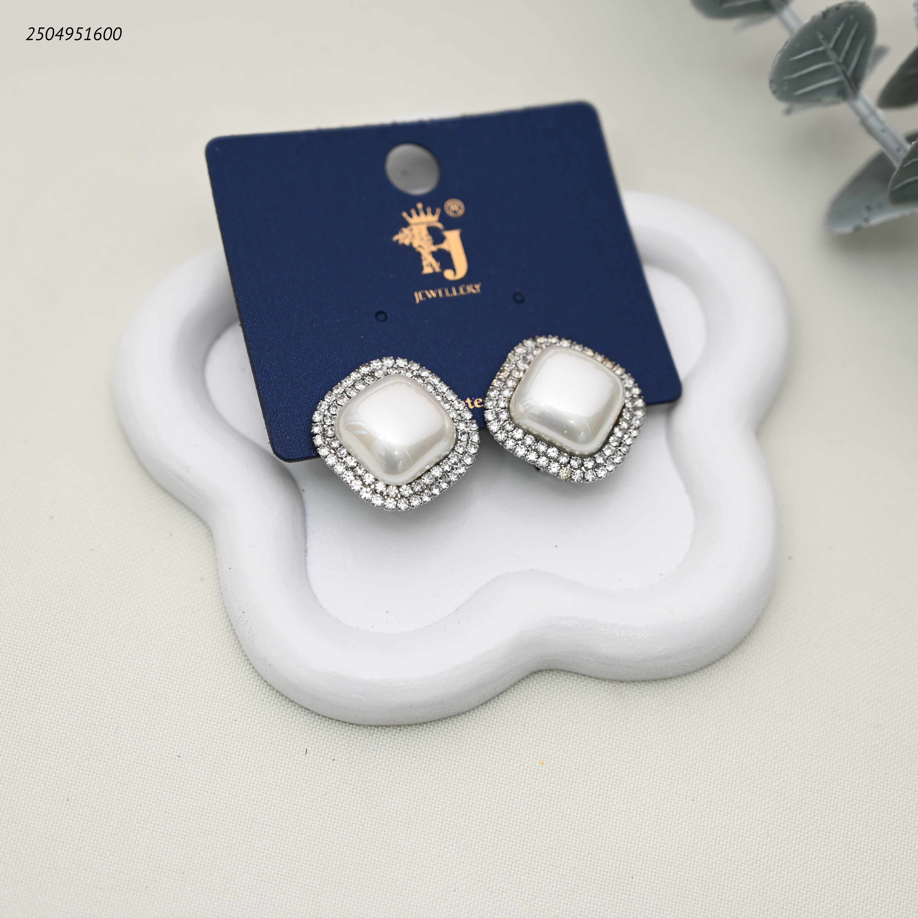 حلق على شكل وسادة من اللؤلؤ محاط بالزركون