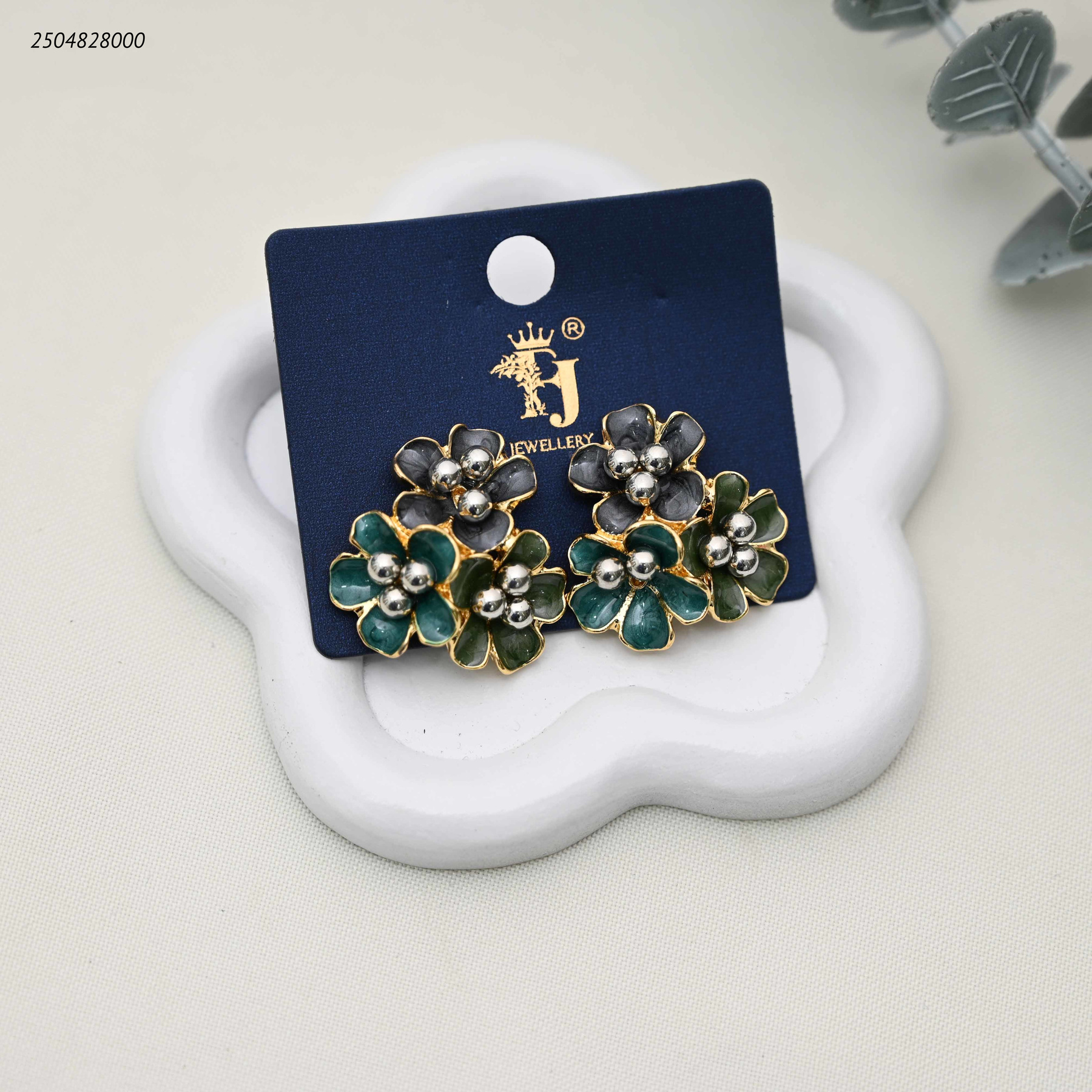 أقراط نسائية بتصميم زهور متعددة الألوان مطلية بالمينا