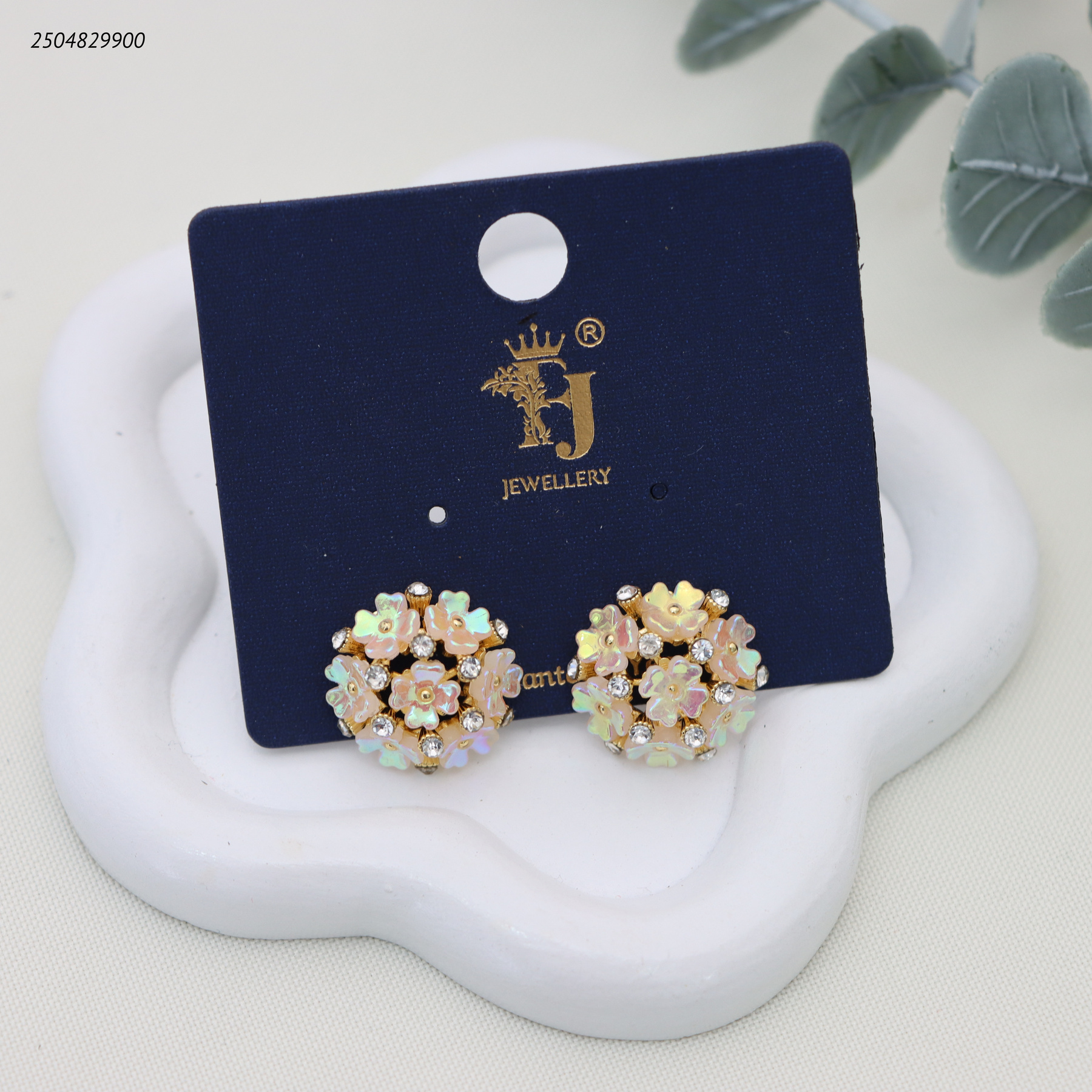 أقراط نسائية بتصميم باقة زهور صغيرة مرصعة بالكريستال