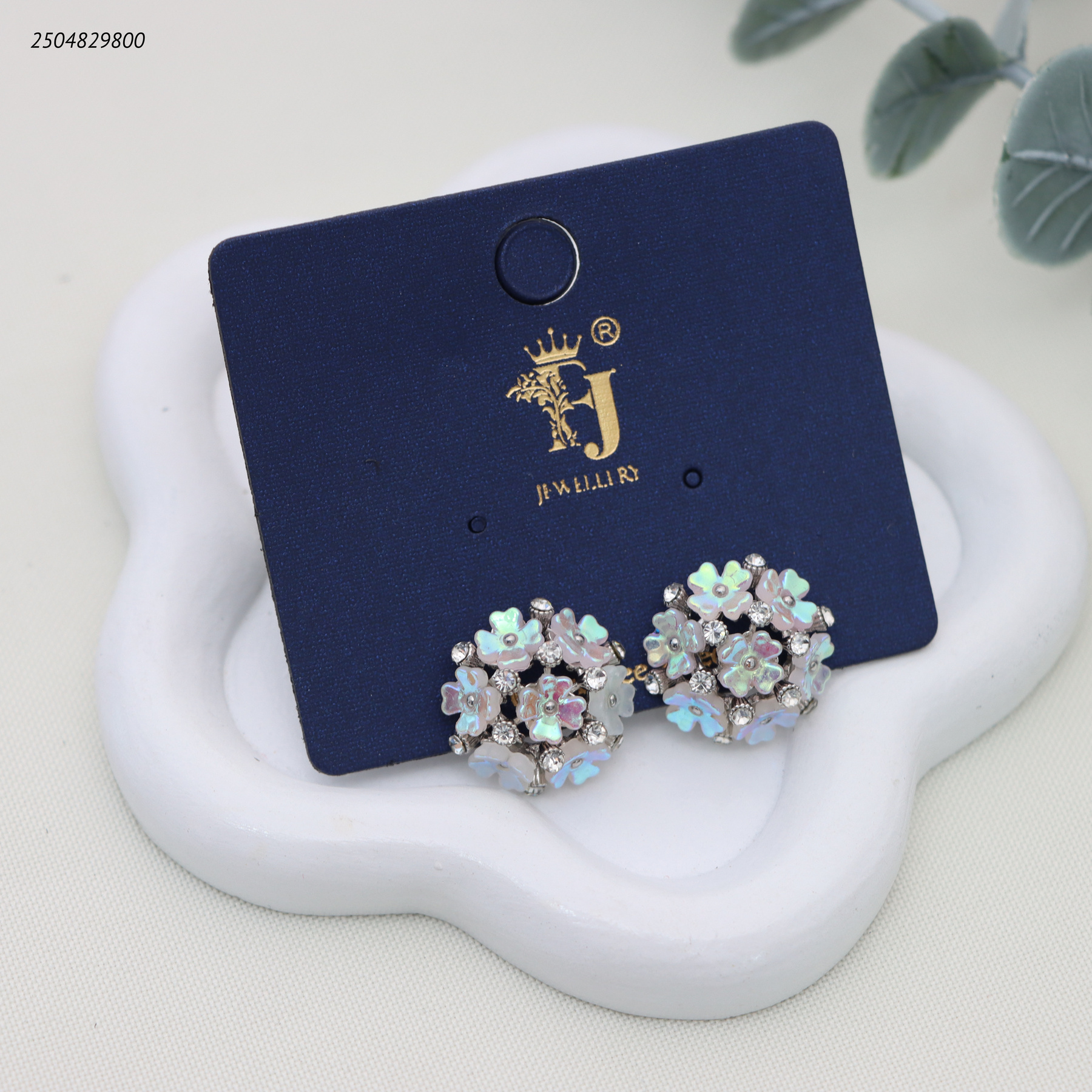 أقراط نسائية بتصميم باقة زهور صغيرة مرصعة بالكريستال