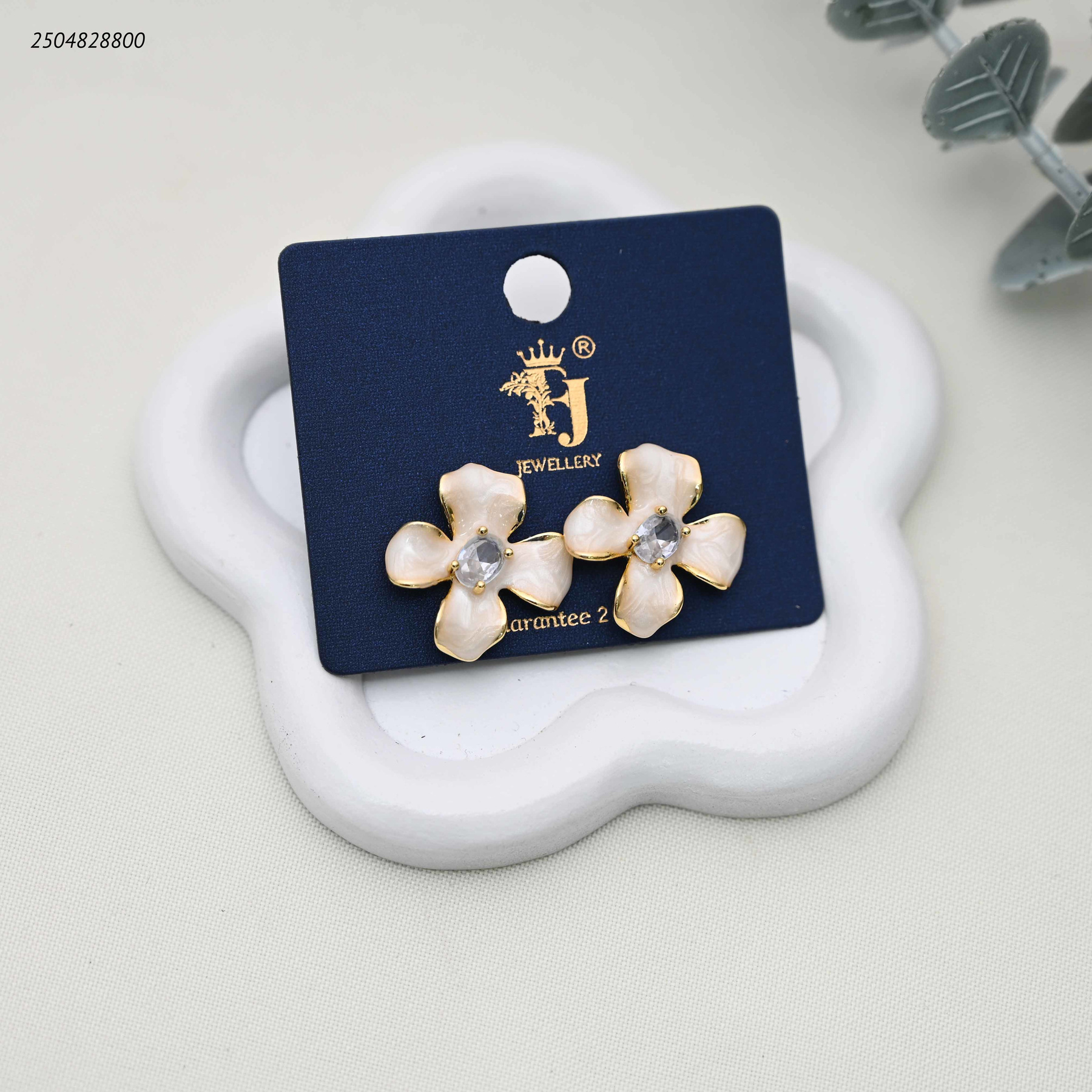 أقراط نسائية بتصميم زهرة مطلية بالمينا الوردية ومرصعة بالكريستال
