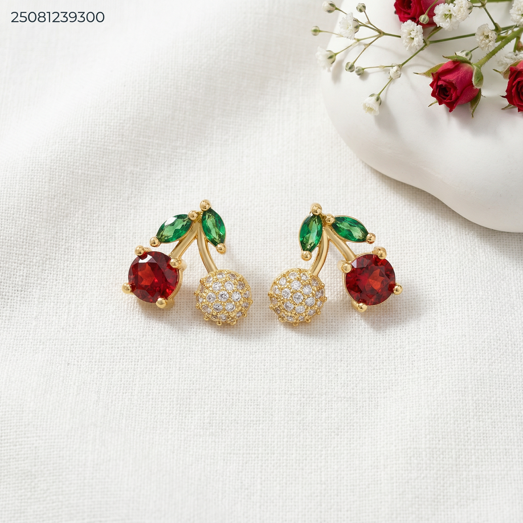 حلق شكل كرز مع زركون
