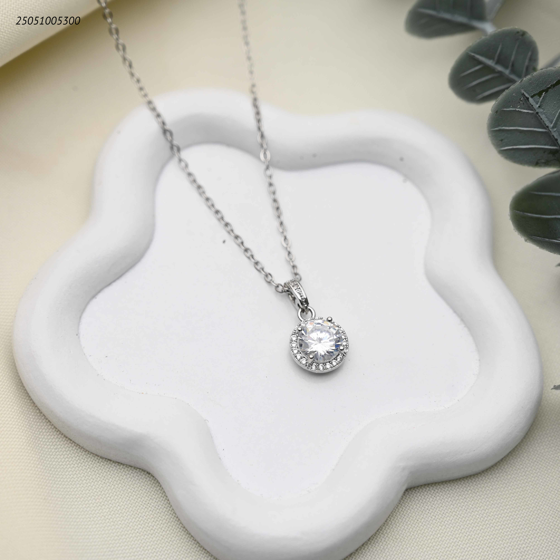 قلادة أنيقة بحجر زركون دائري لامع.