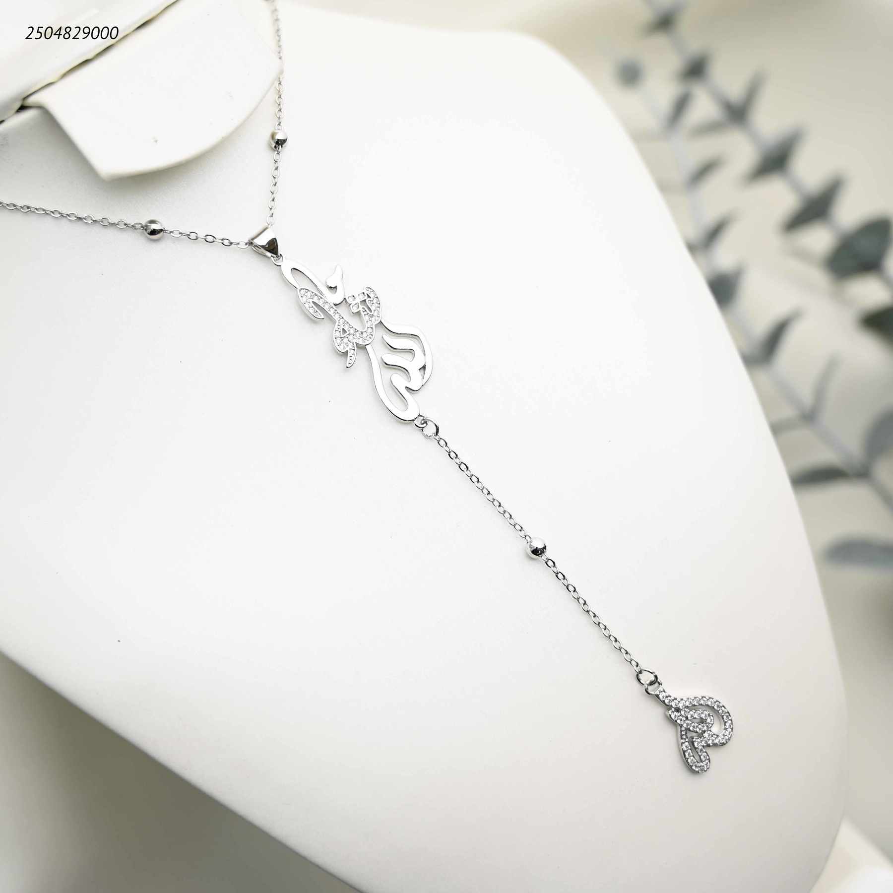 قلادة نسائية طويلة بتعليقات متدلية(الحمد لله) مرصعة بالزيركون