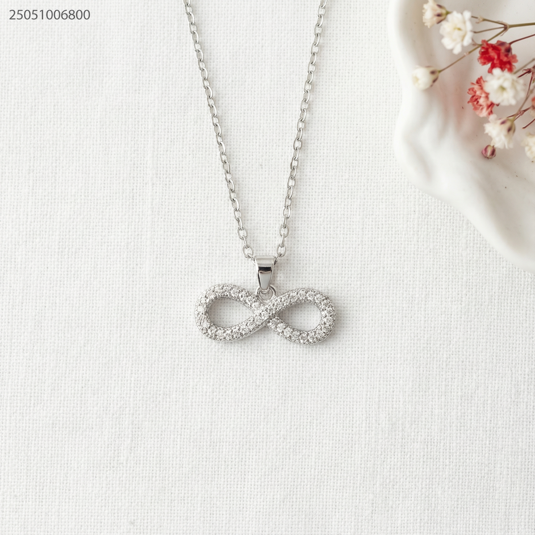 قلادة بتصميم رمز اللانهاية مرصعة بالزركون اللامع.