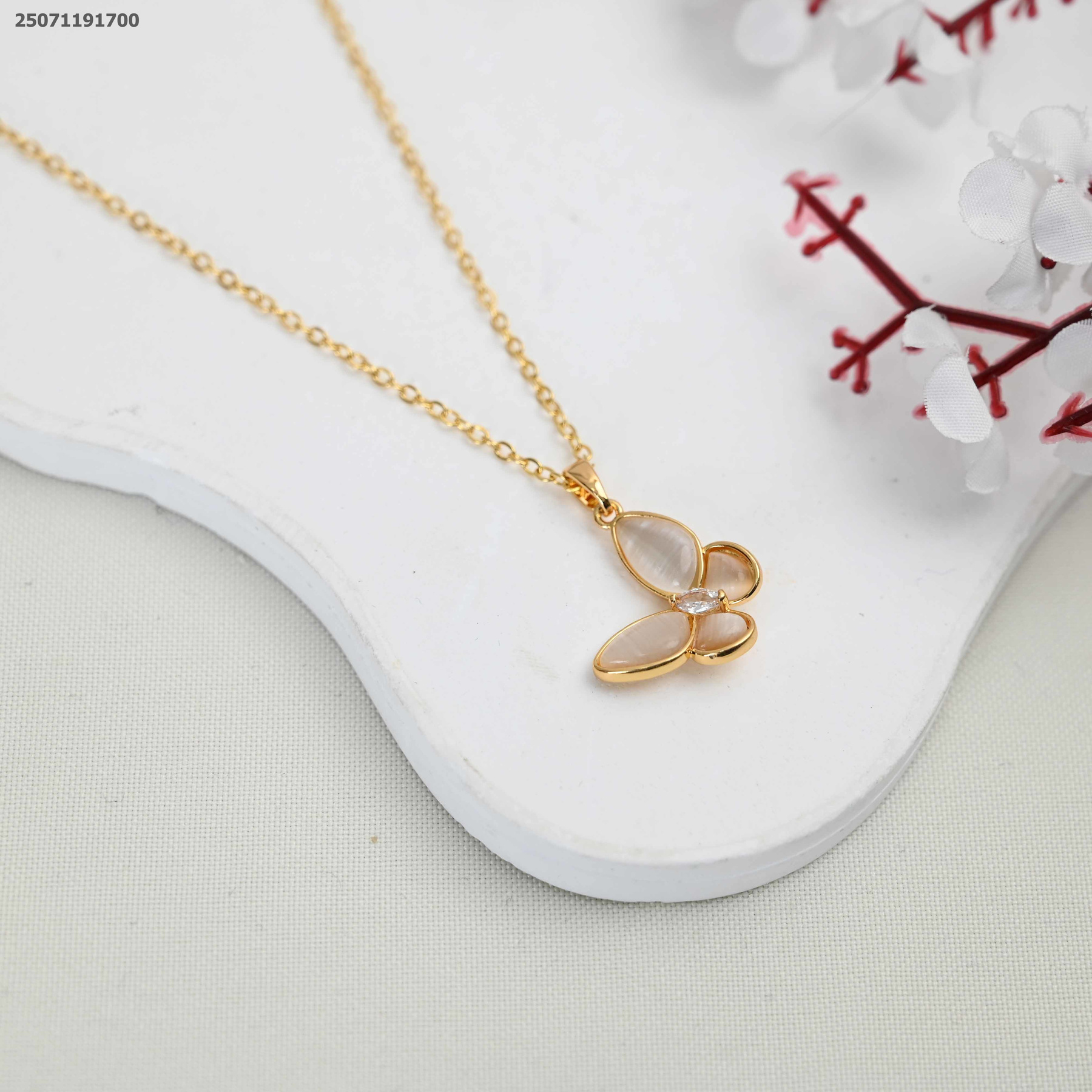 سنسال شكل فراشة مع جناح ملون باللون الأبيض