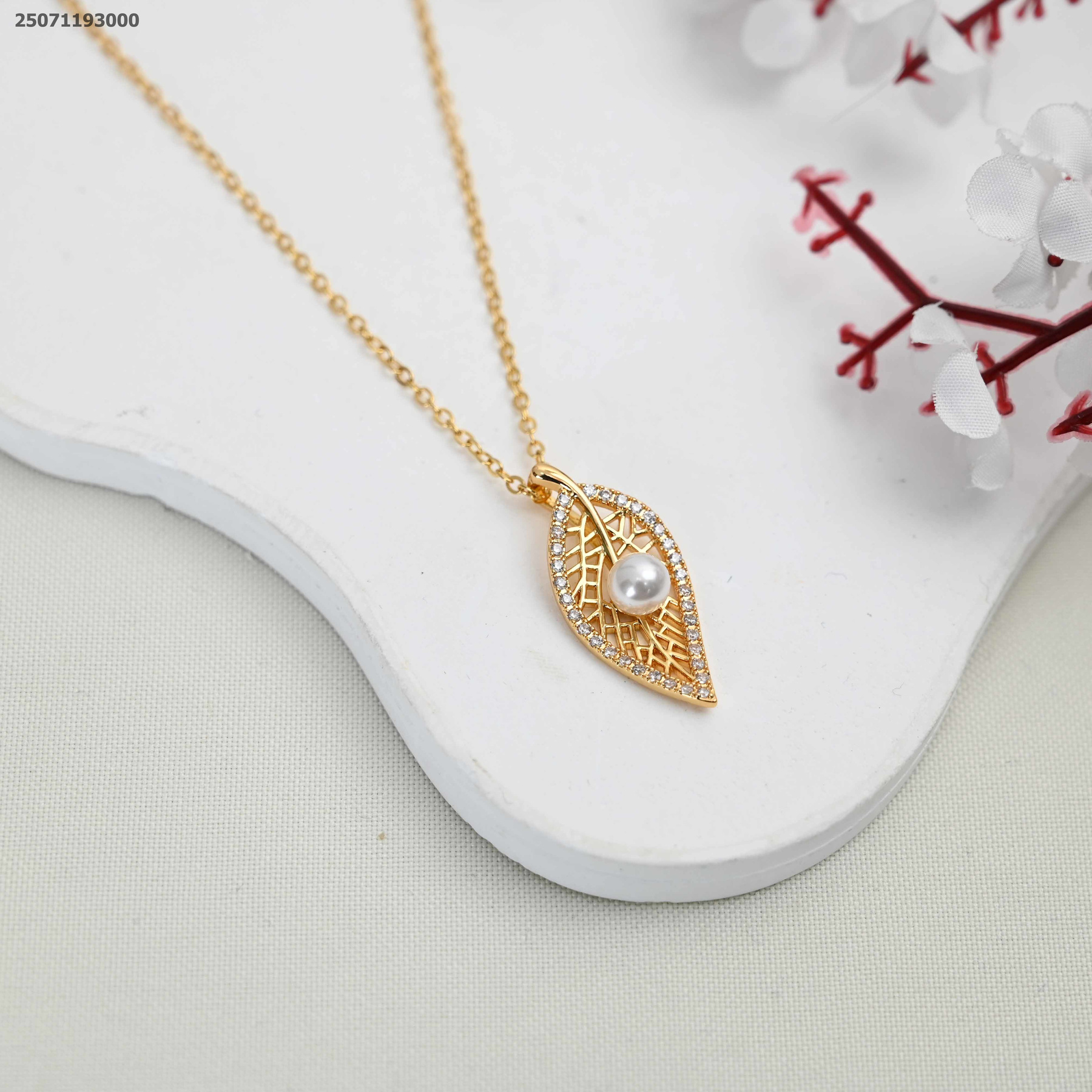 سنسال شكل ورقة اطارها زركون و في وسطها حبة لولو