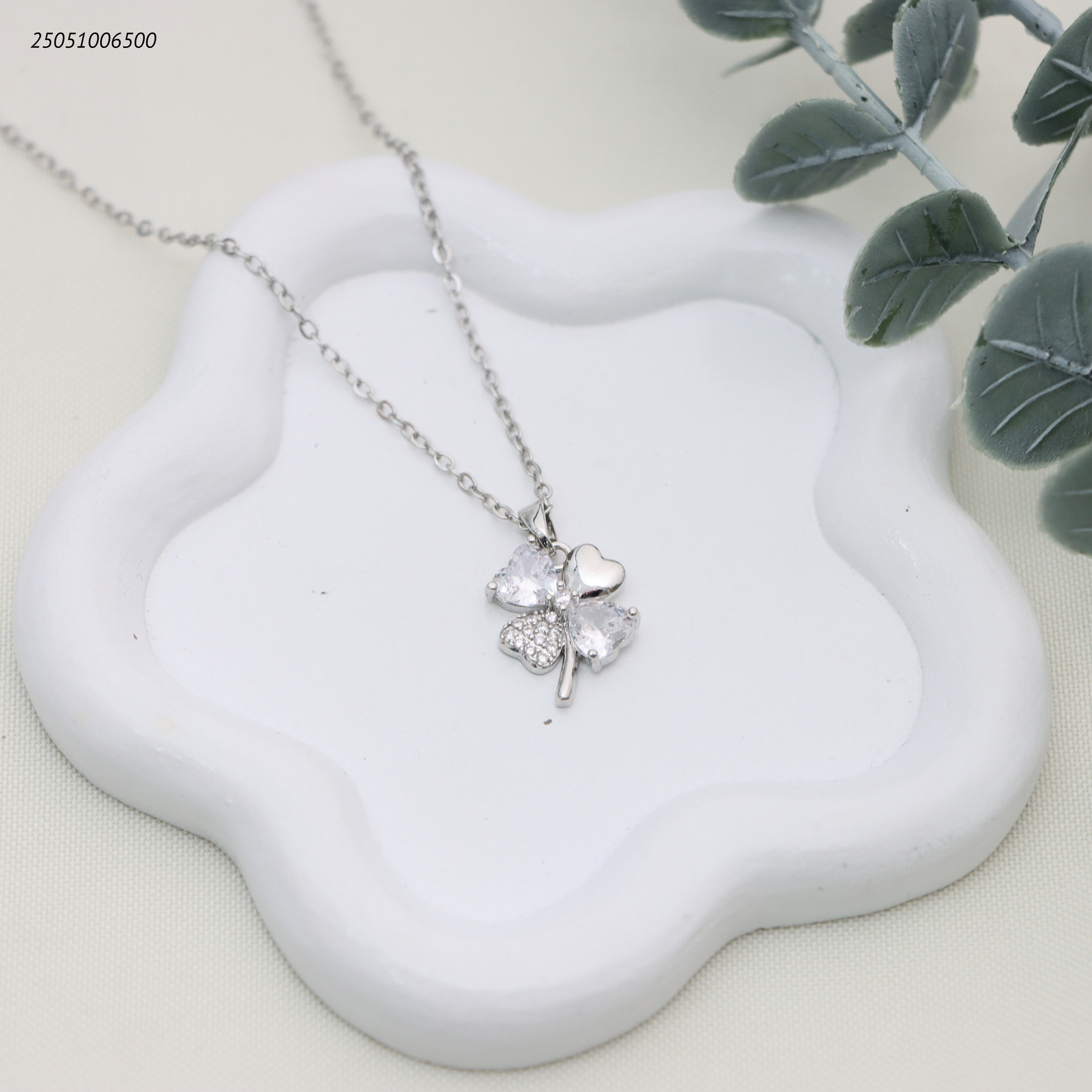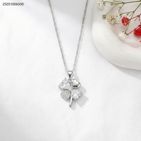 قلادة أنيقة بتصميم زهرة البرسيم مرصعة بالزركون.