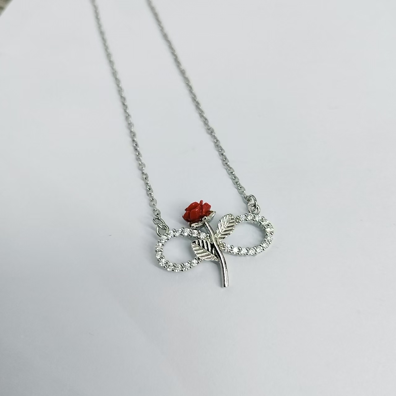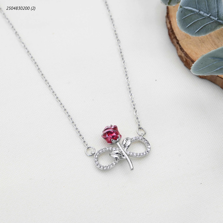 قلادة نسائية بتصميم وردة حمراء وعلامة اللانهاية مرصعة بالزيركون