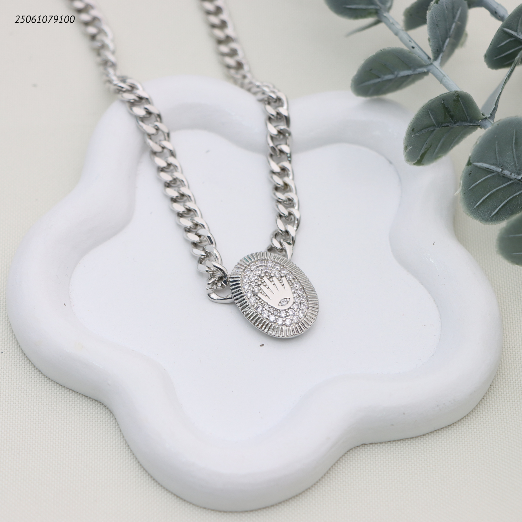 سنسال جنزير مع شكل بيضاوي ماركة مع زركون