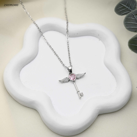 قلادة مفتاح القلب المجنح مرصعة بالزركون