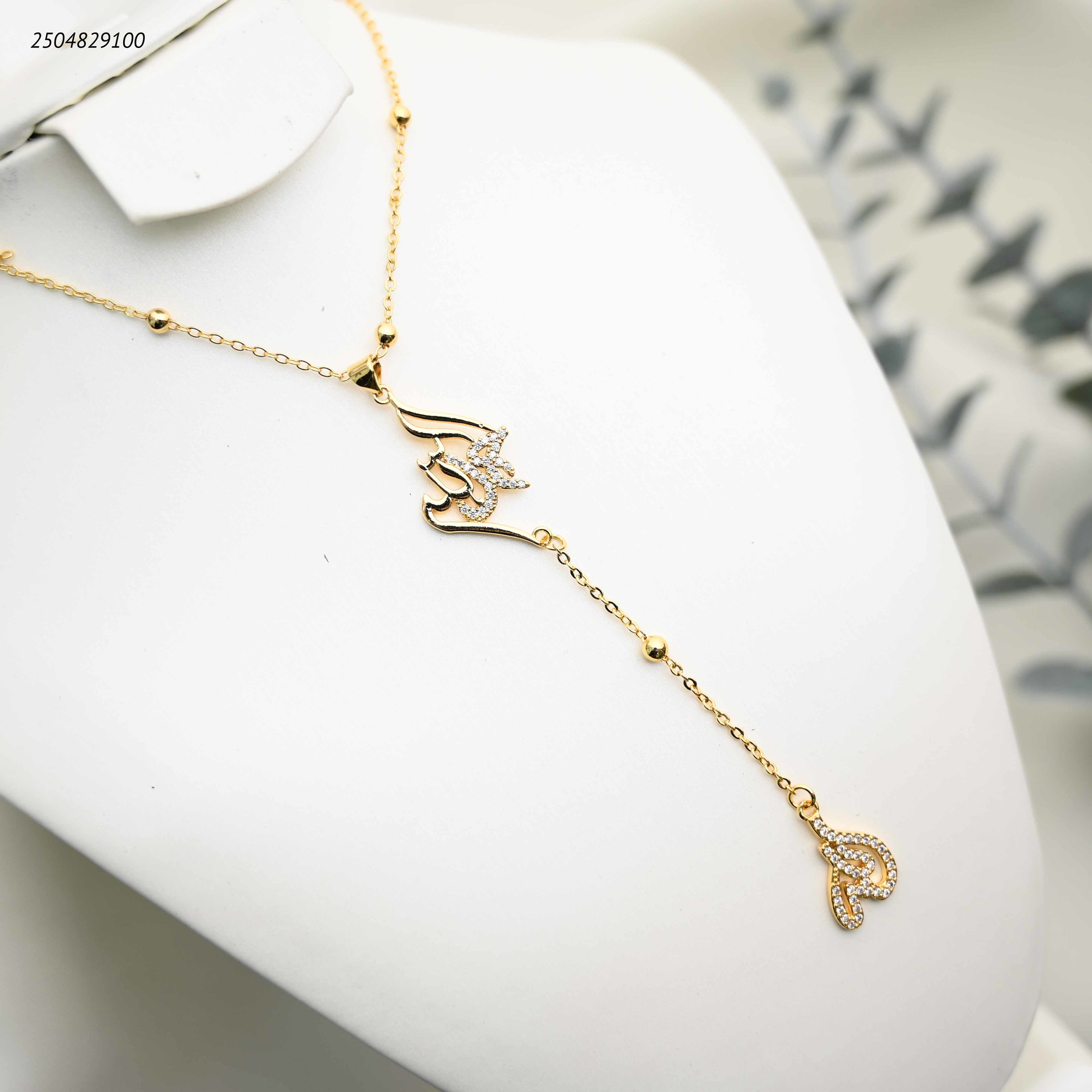 قلادة نسائية طويلة بتعليقات متدلية(الحمد لله) مرصعة بالزيركون
