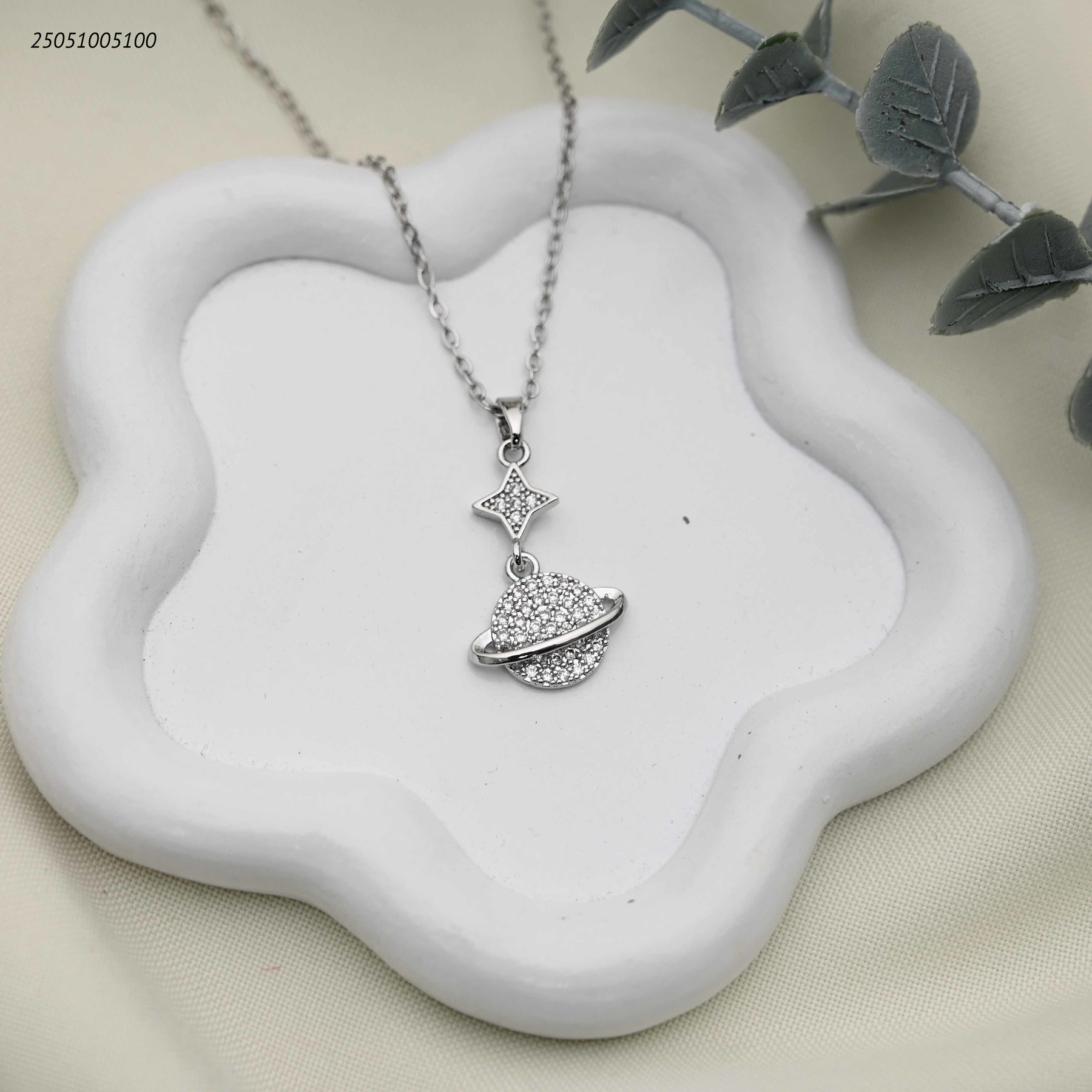 قلادة بتصميم الكوكب والنجمة مرصعة بالزركون اللامع.