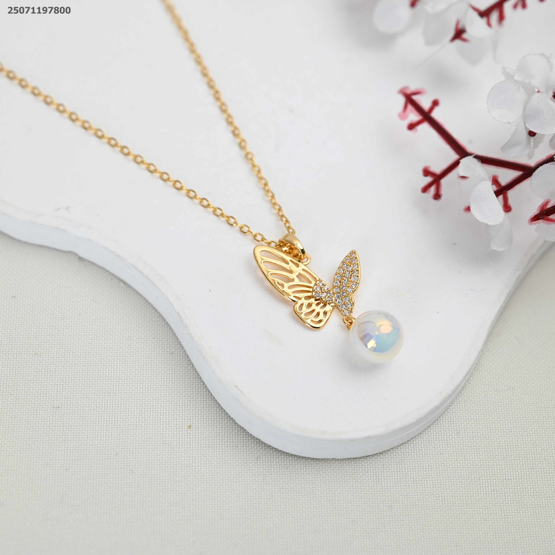 سنسال شكل فراشة مع زركون و حبة لولو
