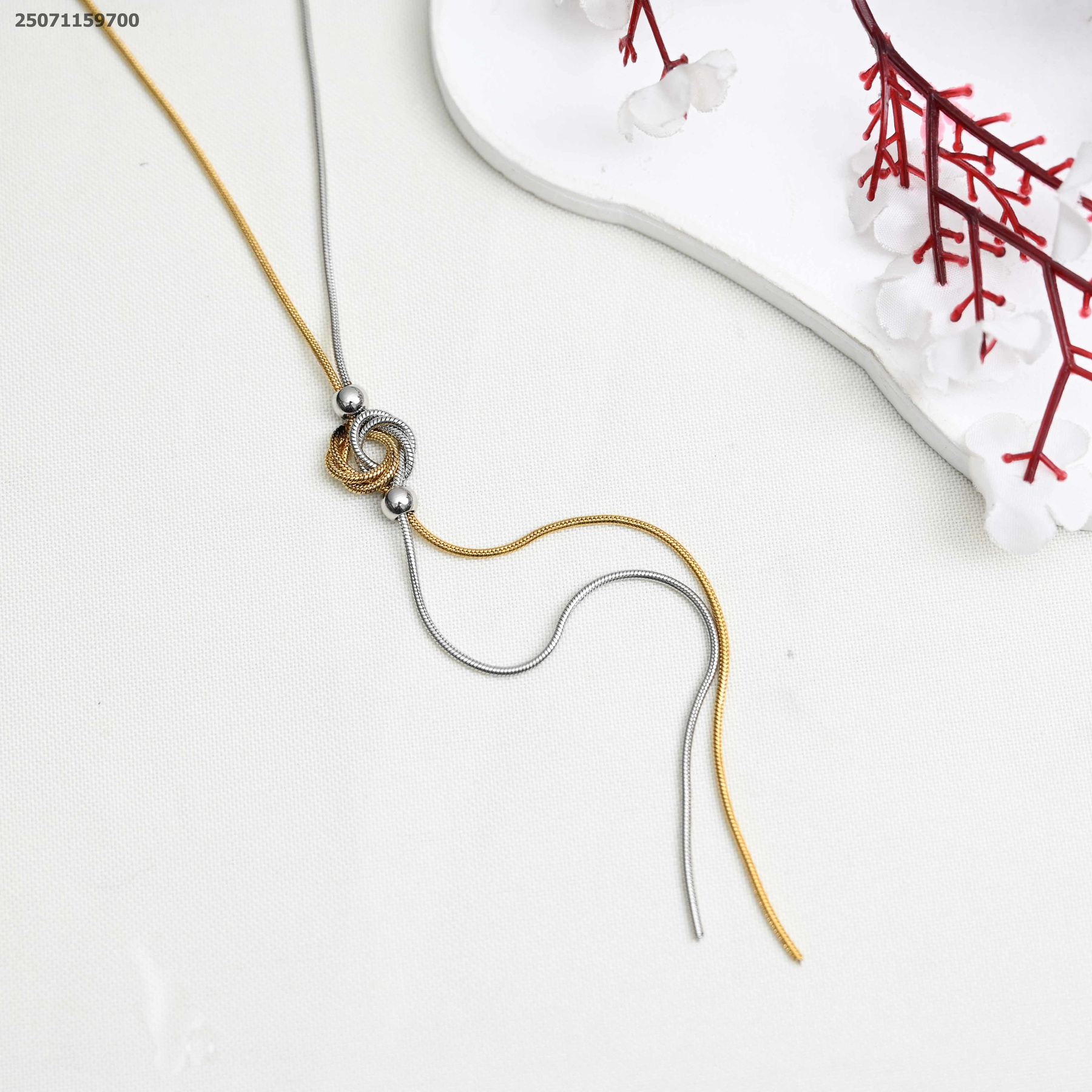 سنسال أنيق و طويل من لونين بعقدة جميلة عند الصدر